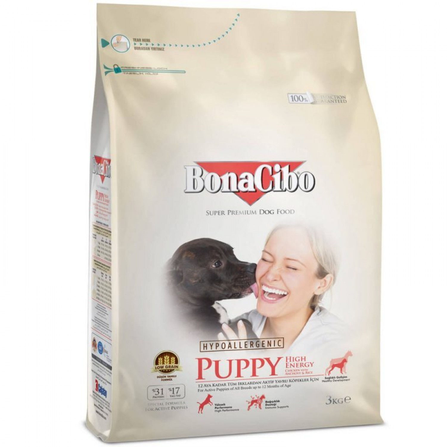 BonaCibo Puppy High Energy сухой корм для активных щенят с курицей, анчоусами и рисом.