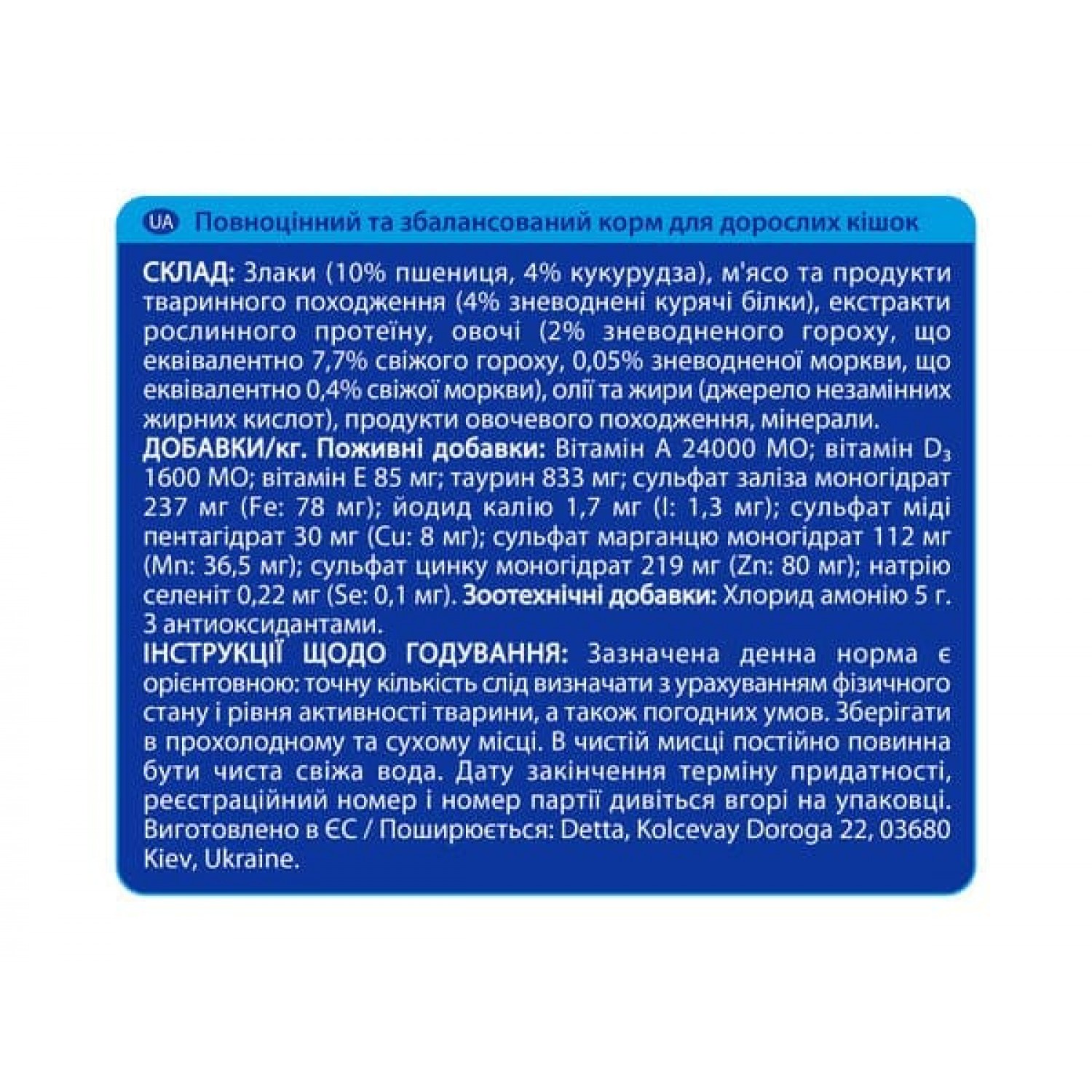- Особая формула со злаками и овощами обеспечивает коту достаточное количество энергии в концентрированной и легкоусвояемой форме.