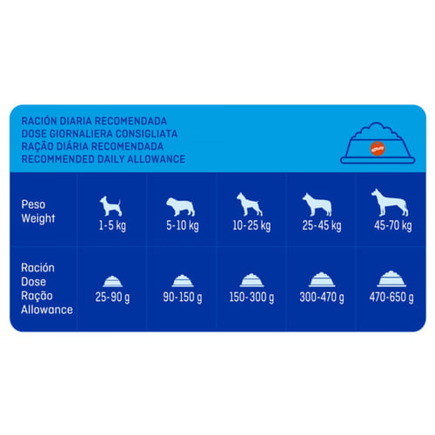 Соблюдайте нормы кормления, указанные в таблице на упаковке, но учитывайте индивидуальные потребности собаки.