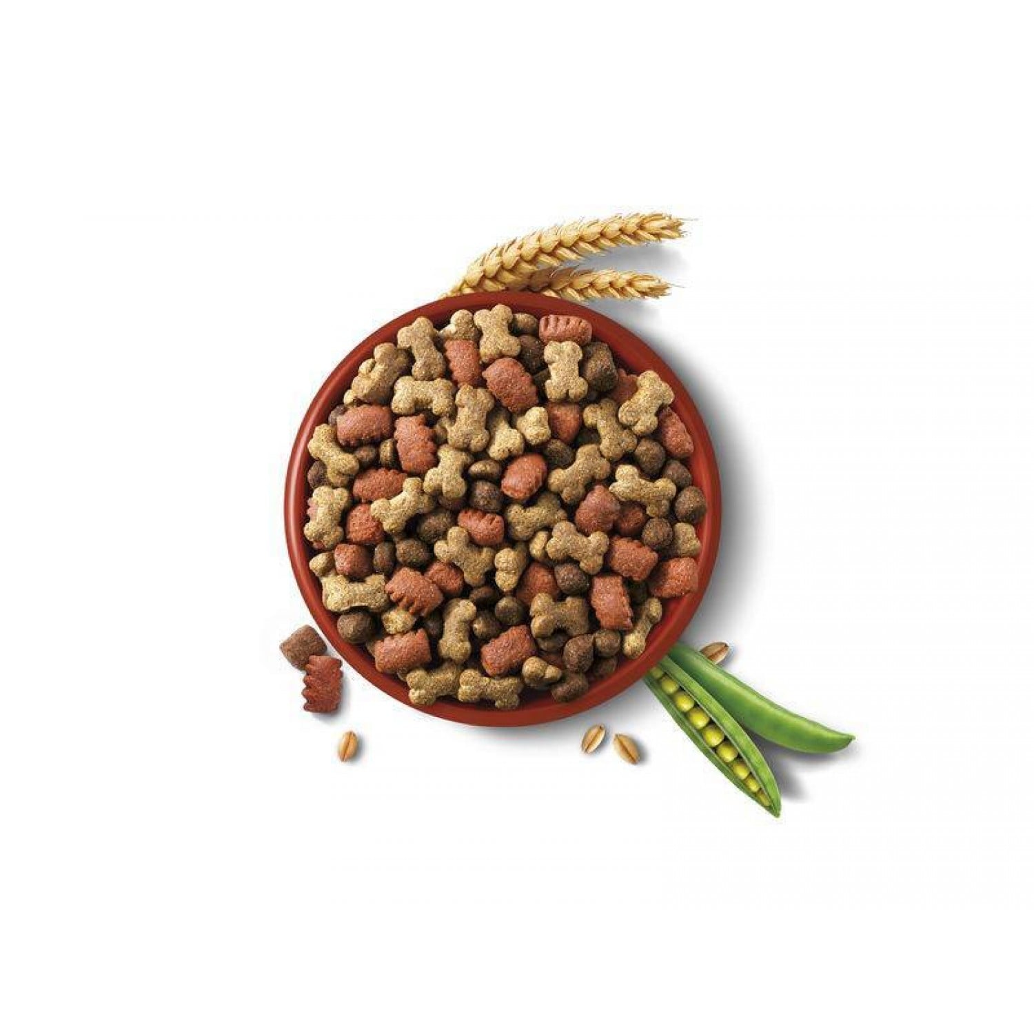 Состав: зерновая крупа (10% пшеница, 4% кукуруза), продукты овощного происхождения (2,5% свекольная стружка), мясо и продукты животного происхождения (4% обезвоженные белки говядины), масла и жиры, минералы, овощи (1% обезвоженного гороха, что эквивалентно 4% свежего гороха, 0,05% обезвоженной моркови, что эквивалентно 0,4% свежей моркови). Антиоксиданты и натуральные красители.