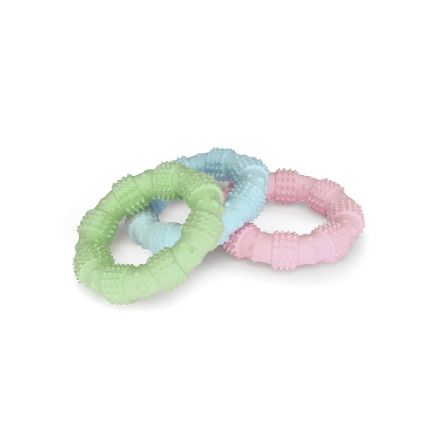 - Массаж десен - специальные мягкие выступы на поверхности кольца нежно массируют десну щенка, облегчая дискомфорт во время прорезывания зубов.