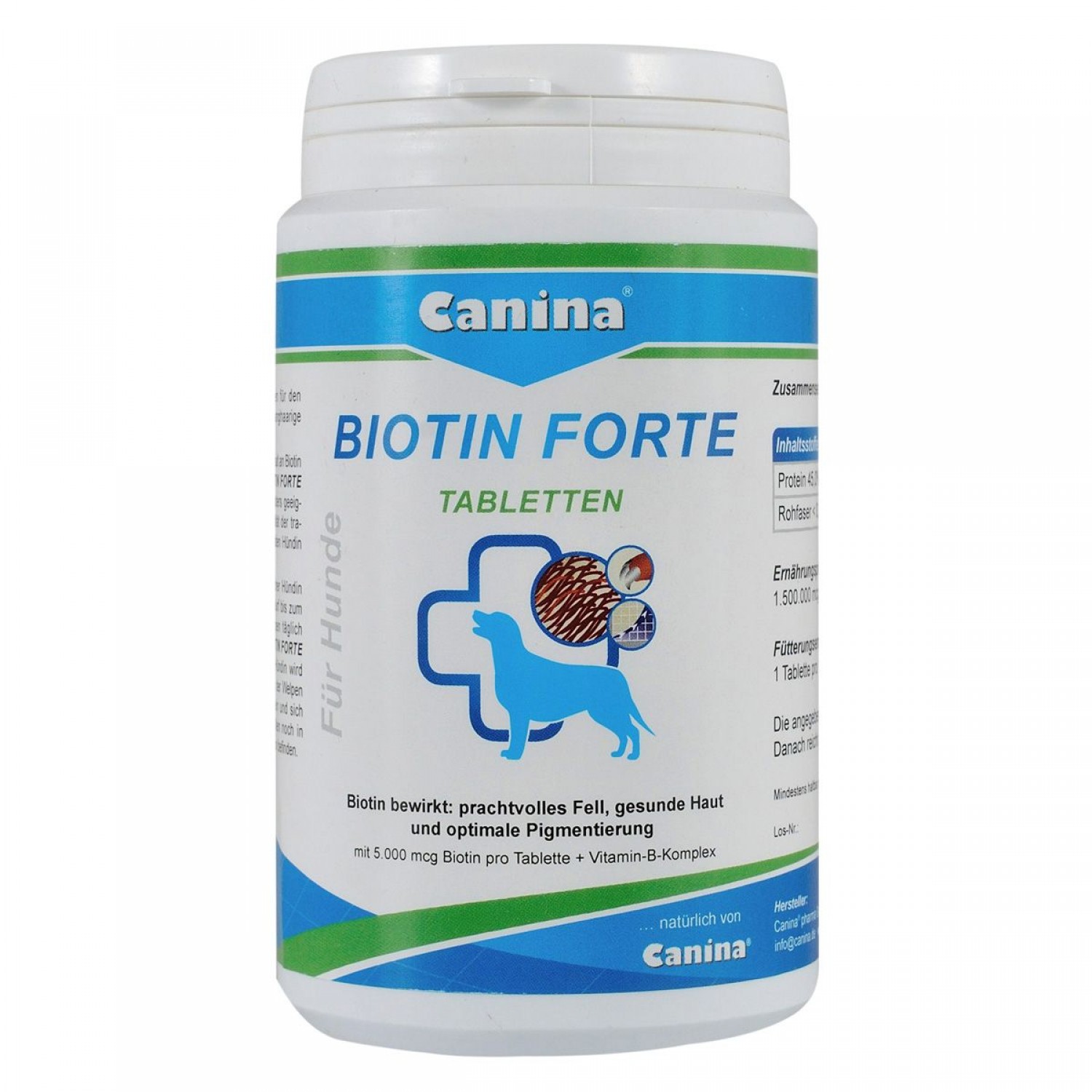 Сбалансированная кормовая добавка с высоким содержанием биотина и витаминов В группы для собак. Была разработана специально для животных, которым не хватает биотина. Первыми признаками этого является сухая, ломкая шерсть с отсутствием блеска, перманентная лень, перхоть, зуд. Canina «Biotin Forte» помогает преодолеть эту недостачу, и придать шерсти питомца блеск и здоровье.