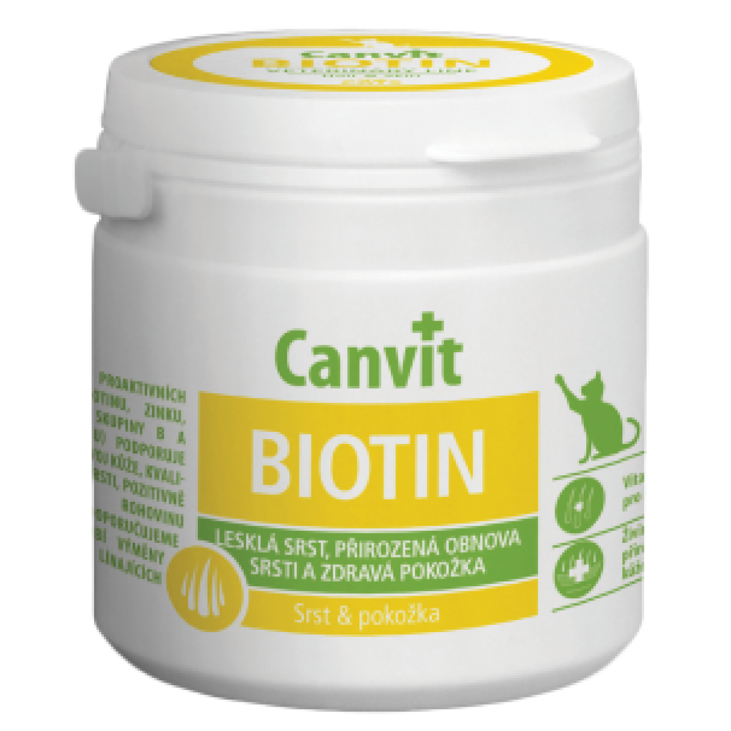 Препарат Canvit Biotin содержащий биотин, витамин В2 и цинк в хелатной форме обеспечит здоровье кожи и яркий внешний вид шерсти взрослых кошек.