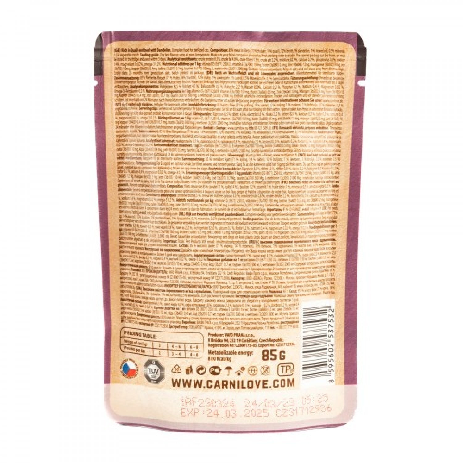 Carnilove Cat Pouch влажный корм для стерилизованных кошек с перепелом и одуванчиком.