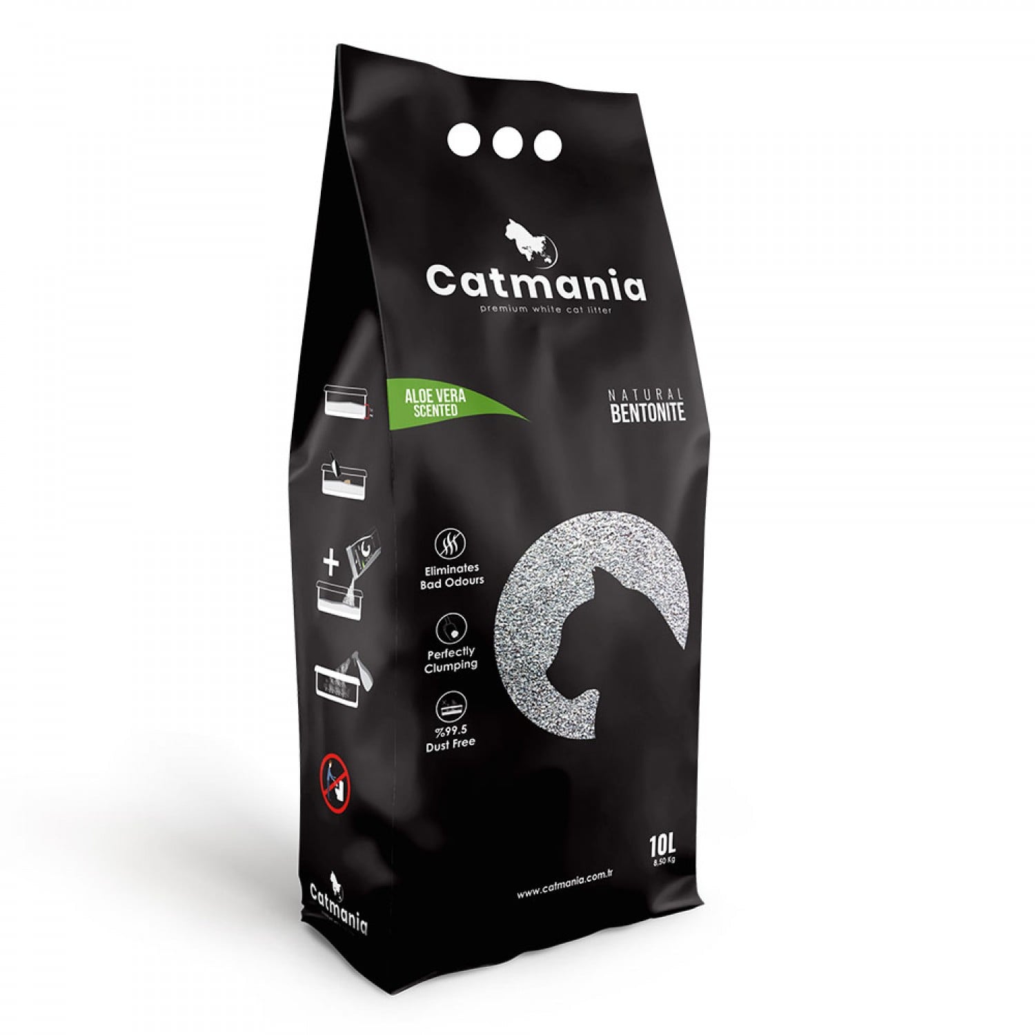 Catmania — белый природный бентонитовый наполнитель, который обеспечивает превосходную эффективность комкования. Наполнитель Catmania обеспечит более комфортное и экологическое содержание питомца. Гранулы имеют компактную форму, плоские и достаточно жесткие. Это дает отличную производительность для экономического и длительного использования с эффективной борьбой с неприятными запахами. Цветные зеленые гранулы ароматизированы алоэ вера. Он обладает очень высокой абсорбционной способностью.