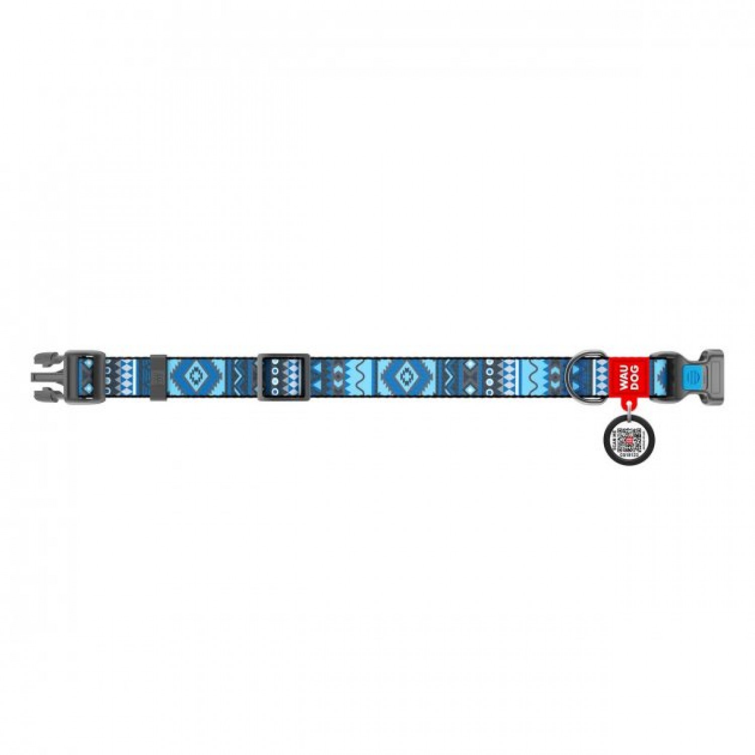 Collar WAUDOG Nylon нейлоновый ошейник "Этно синий" c QR паспортом для собак.