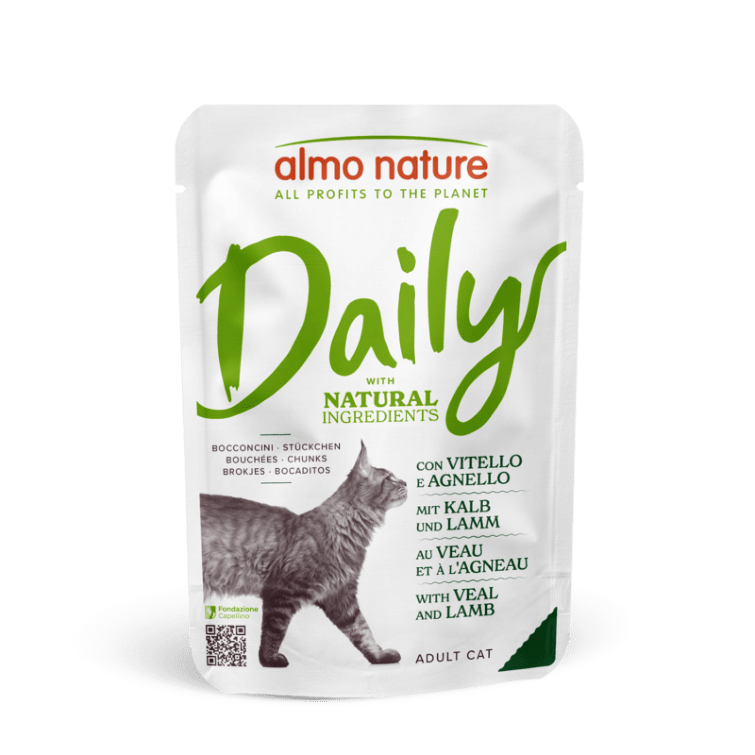 Almo Nature Daily Cat с телятиной и ягненком в соусе - это влажный беззерновой корм суперпремиум-класса, созданный для ежедневного кормления взрослых кошек, которые заслуживают лучшего.