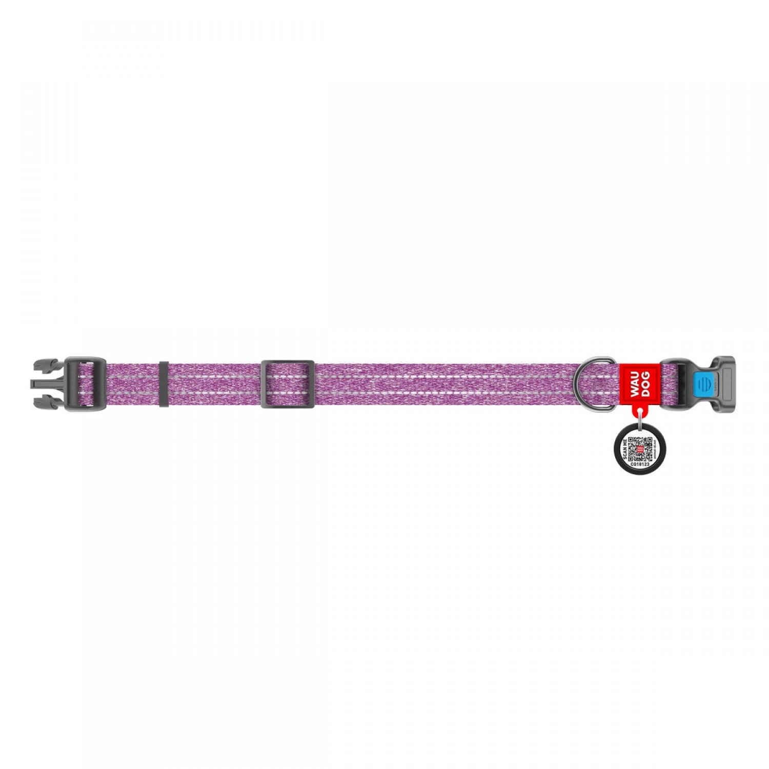 Collar WAUDOG Re-cotton светоотражающий ошейник с QR паспортом для собак (фиолетовый).