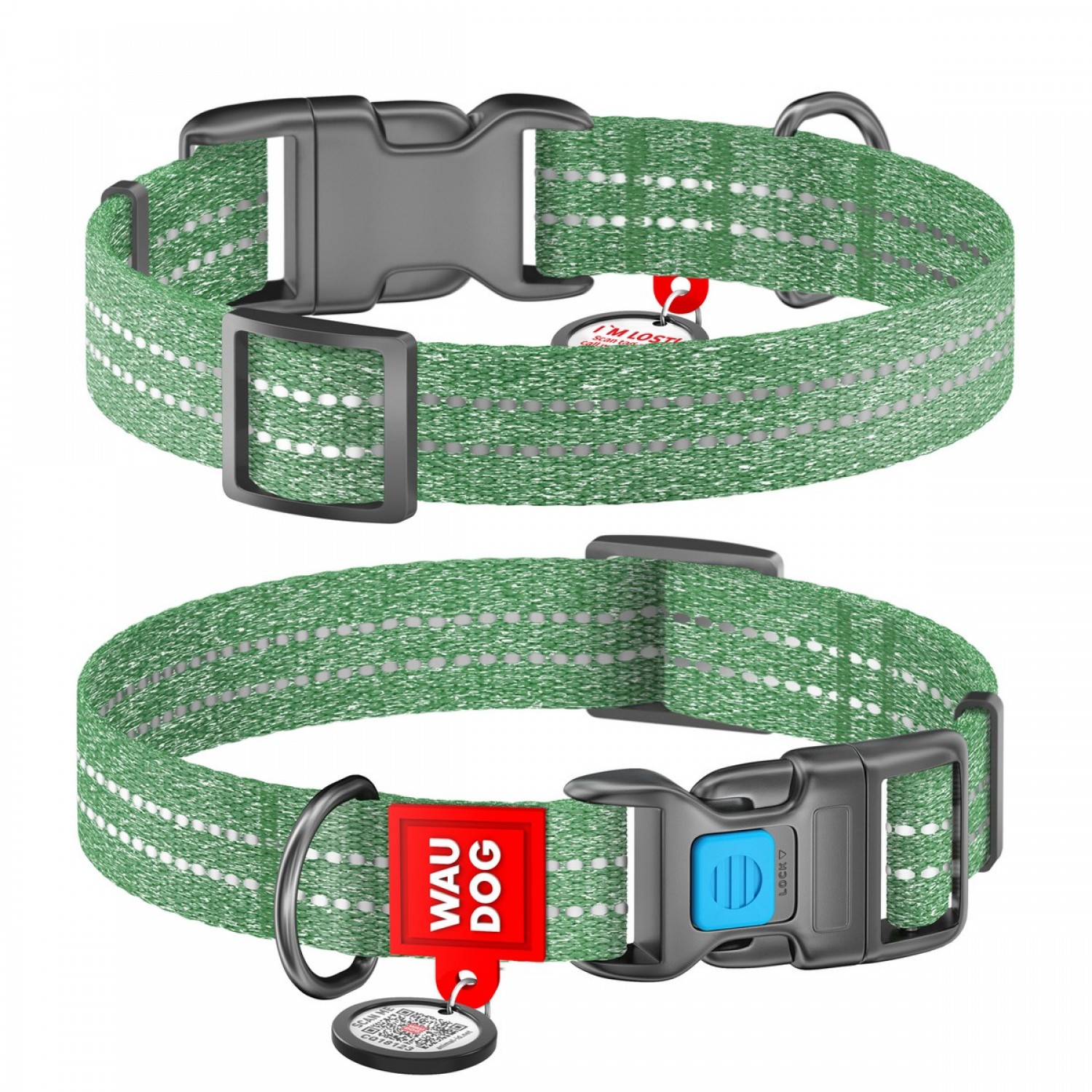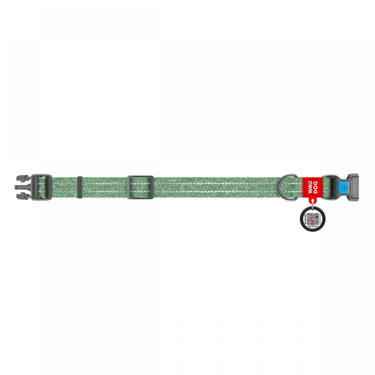 Collar WAUDOG Re-cotton светоотражающий ошейник с QR паспортом для собак (зеленый).