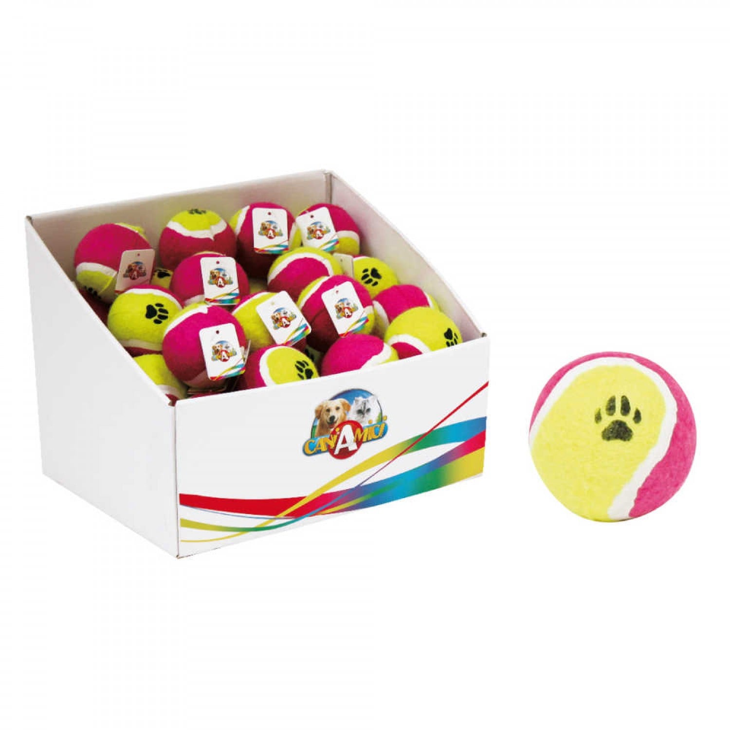 Игрушка "Мяч тенисный с лапкой" идеально подходит для собак малых и средних пород.