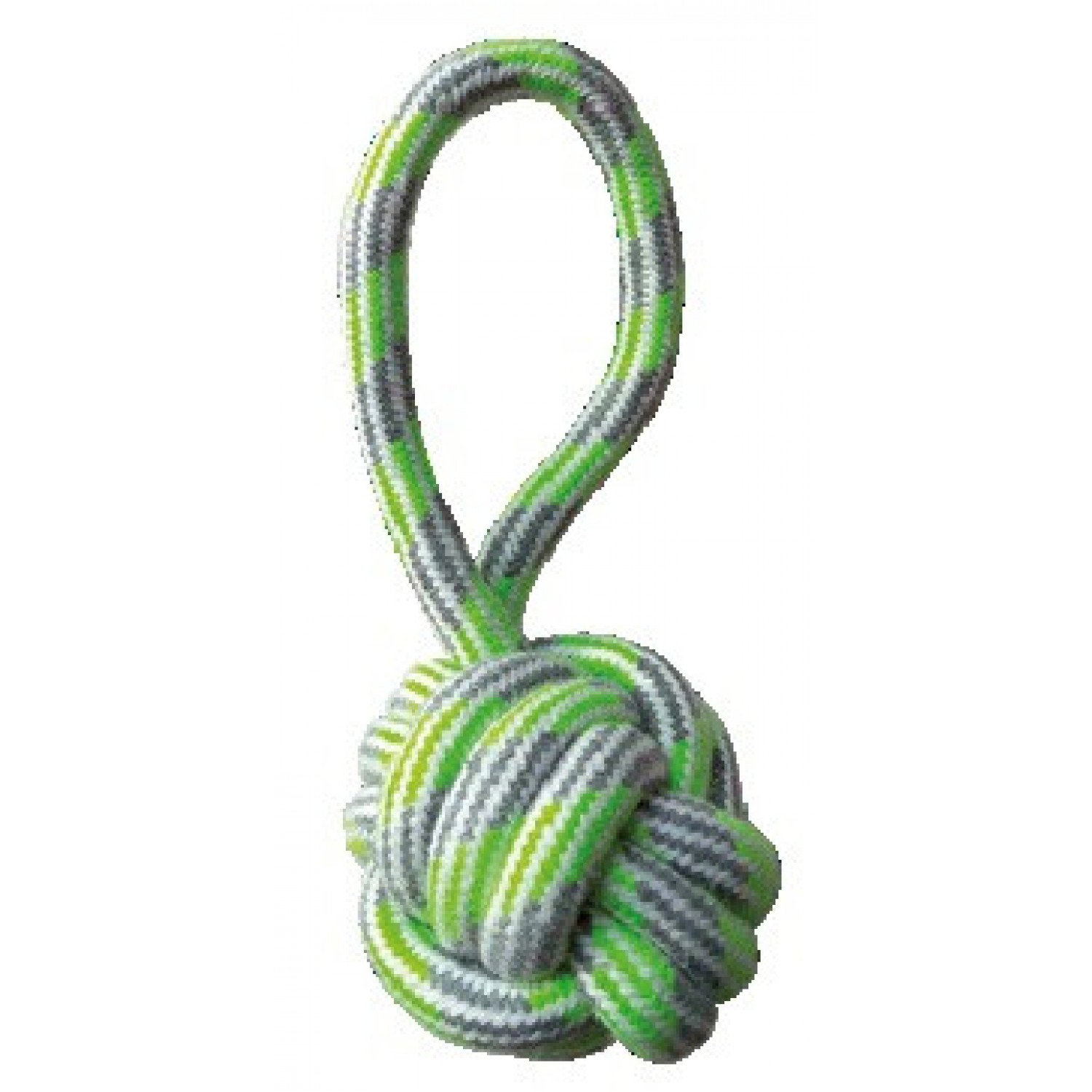 Игрушка для собак из тканых волокон, прочная, устойчивая и изготовленная из натуральных материалов. В то время как собака жует веревку, волокна проникают в межзубное пространство и обеспечивают эффективную чистку зубов. Специальная игрушка из котона – практичная игрушка для собак.