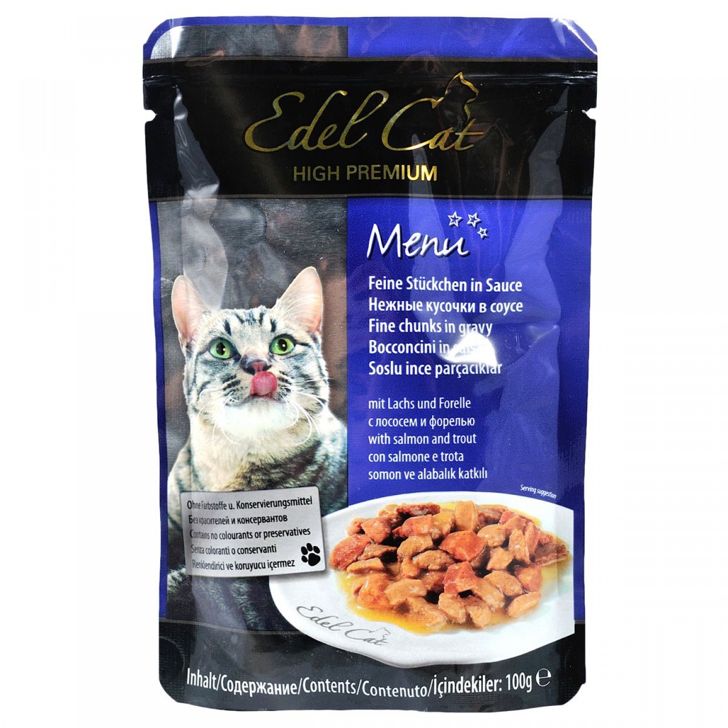 Edel Cat Кусочки с лососем и форелью в соусе для кошек, пауч.