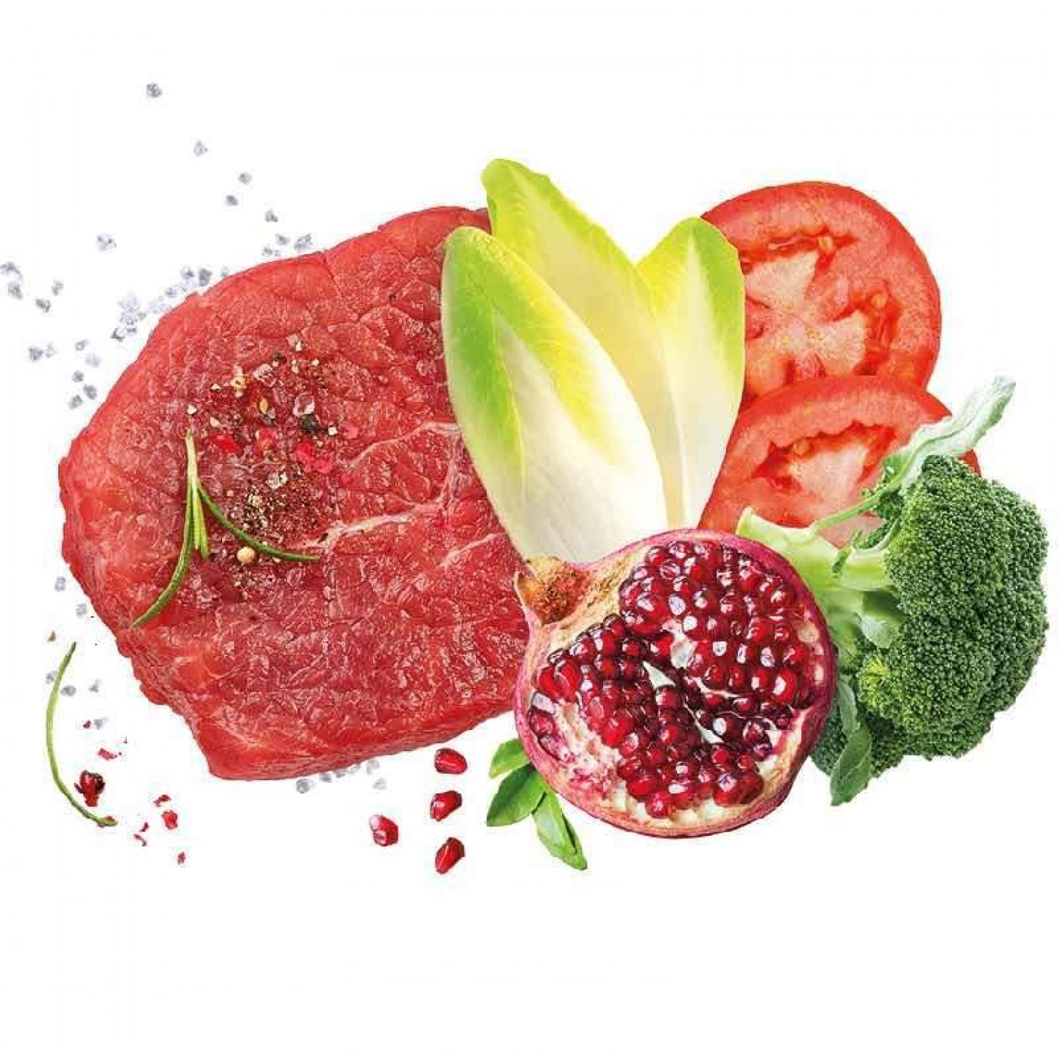 - Оливковое масло, помидор, гранат, брокколи, конопля и цикорий, содержащиеся в составе корма, богаты антиоксидантами, защищающими клетки организма от окислительного стресса и преждевременного старения клеток.