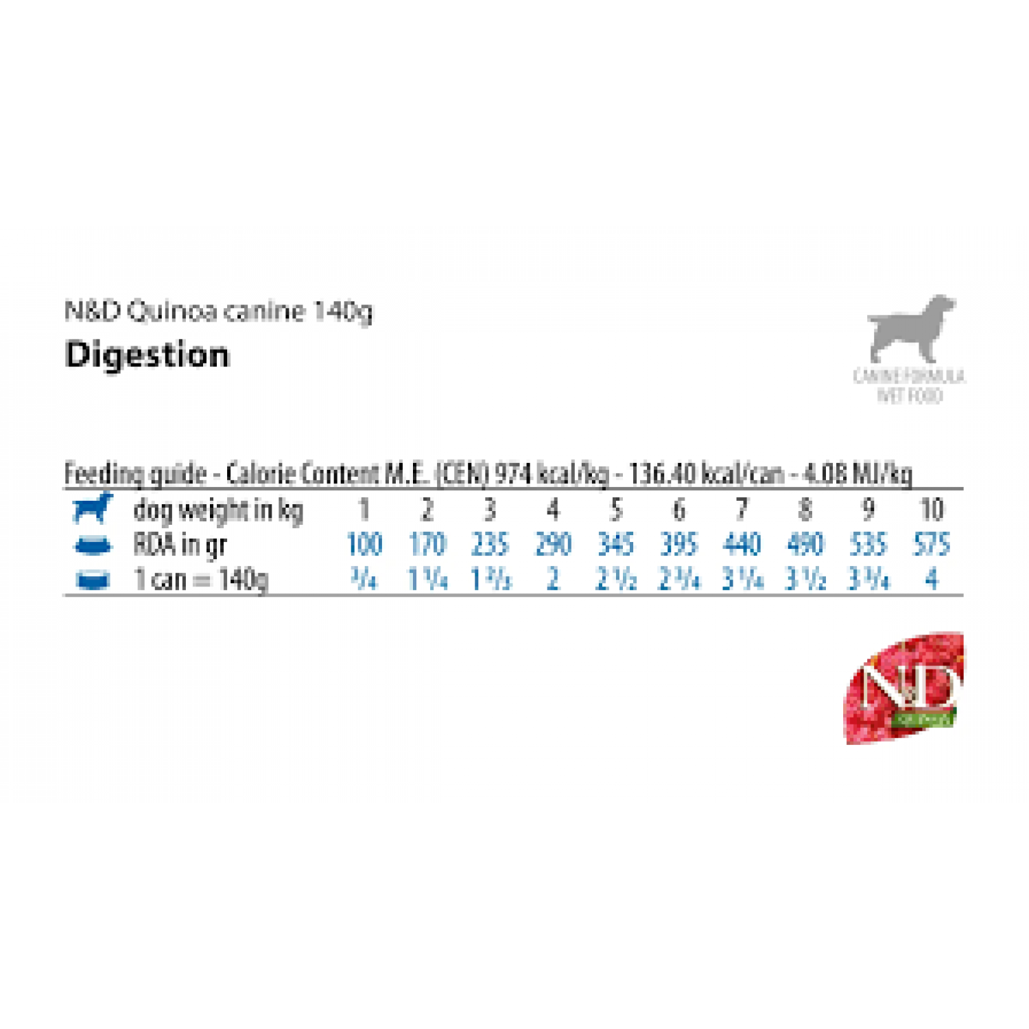 N&D Quinoa Digestion - полнорационный диетический корм для взрослых собак мелких пород, рекомендованный для компенсации плохого пищеварения и экзокринной недостаточности поджелудочной железы.