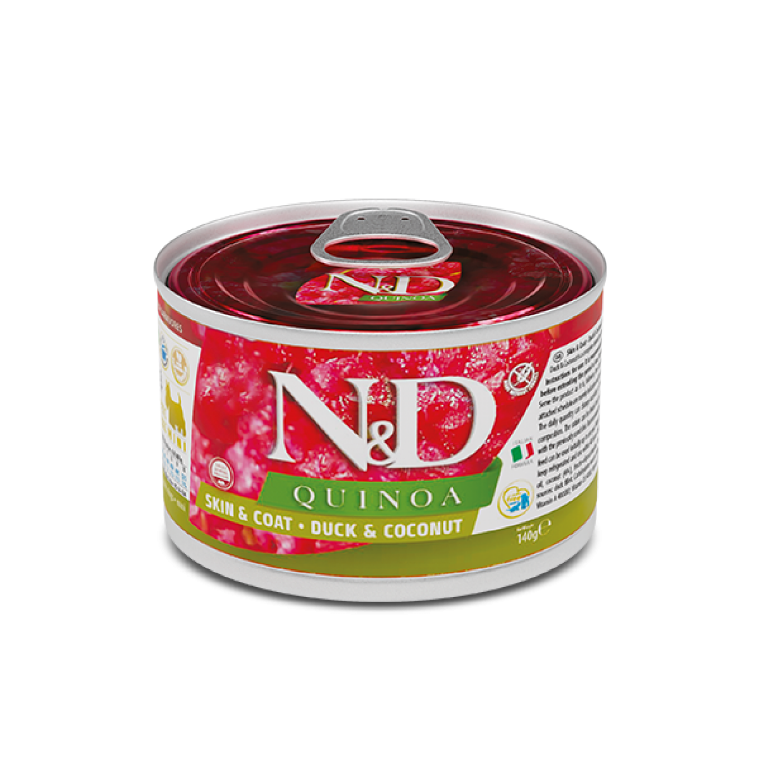Farmina N&D Quinoa Dog Adult Mini Skin & Coat влажный корм для собак мелких пород при пищевой аллергии с уткой, киноа, кокосом и куркумой.