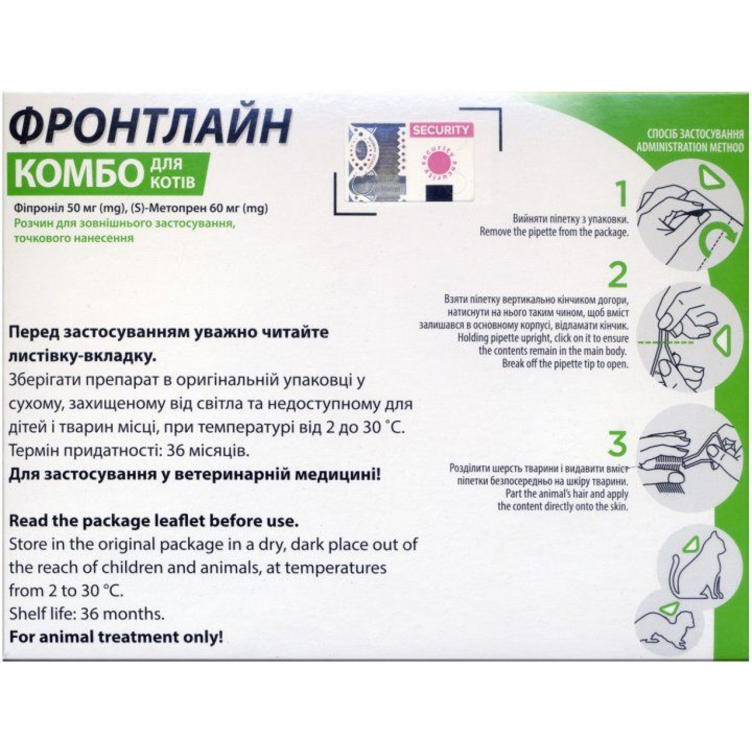Фронтлайн Комбо — инсекто-акарицидный раствор контактного действия для наружного применения для кошек и хорьков.