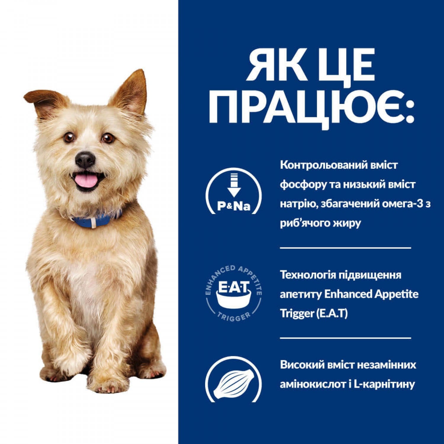 - Технология повышения аппетита Enhanced Appetite Trigger (E.A.T.) стимулирует аппетит у собак с заболеваниями почек, нуждающихся в повышенном потреблении калорий в 4-5.