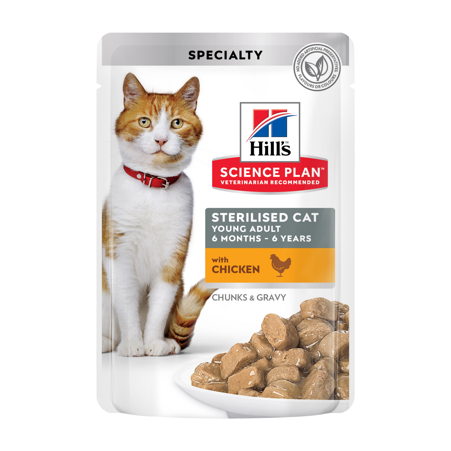 Влажный корм для кошек Hill's Science Plan Young Adult Sterilised с курицей - полнорационное питание, специально разработанное диетологами и ветеринарными врачами для стерилизованных кошек в возрасте от 6 месяцев до 6 лет. Стерилизация кошек и кастрация кошек проводится, чтобы предотвратить нежелательную беременность и определенное поведение. После стерилизации коты могут страдать от лишнего веса, для них увеличивается риск возникновения проблем с мочеиспусканием. В то же время у них повышается аппетит и снижаются энергетические нужды. Вот почему Hill's Science Plan Young Adult Sterilised был разработан для ежедневного кормления. Это питание дает возможность здорового развития и поддержания здоровья взрослых кошек на высоте сил.