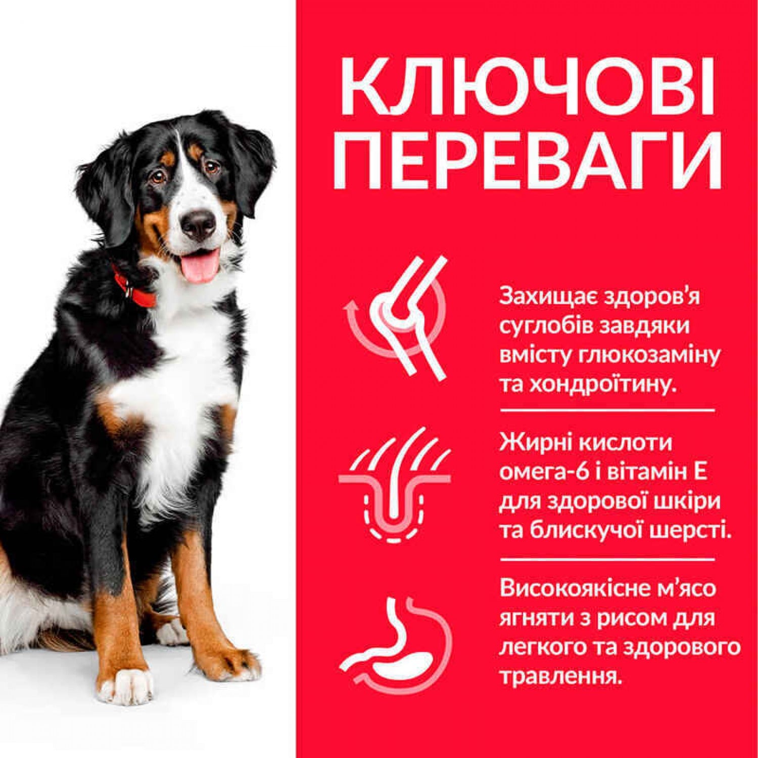 Входящие в состав хондроитин из гидролизата хряща и глюкозамин из скорлупы ракообразных защищают суставы и соединительные ткани животного, а также играют роль строительного материала для создания здоровой хрящевой ткани.