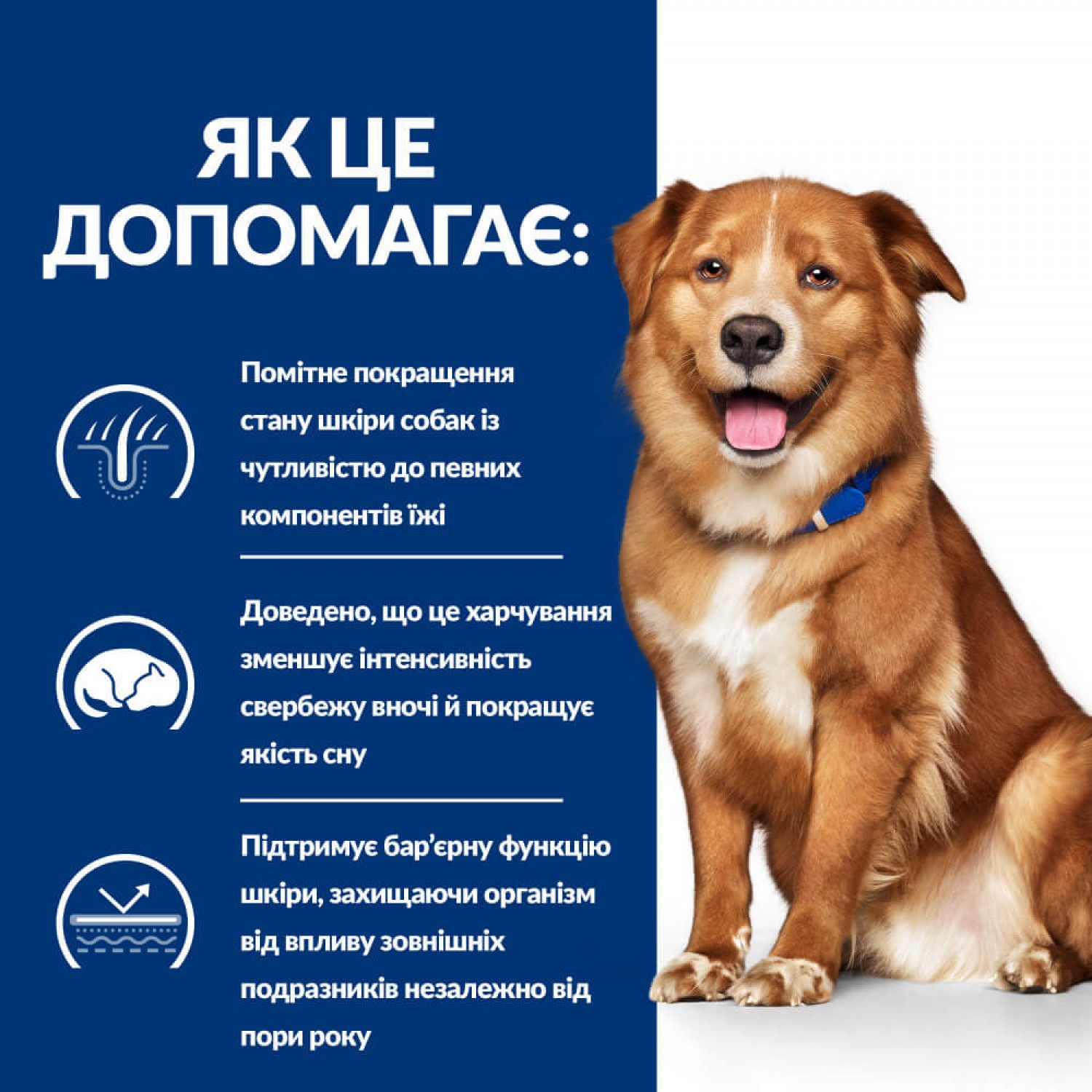 Сухой корм для собак Hill's Prescription Diet Derm Complete - полнорационное диетическое питание, специально разработанное диетологами и ветеринарными врачами, которое имеет клинически доказанную способность облегчать состояние при различных заболеваниях кожи, независимо от их основной причины.