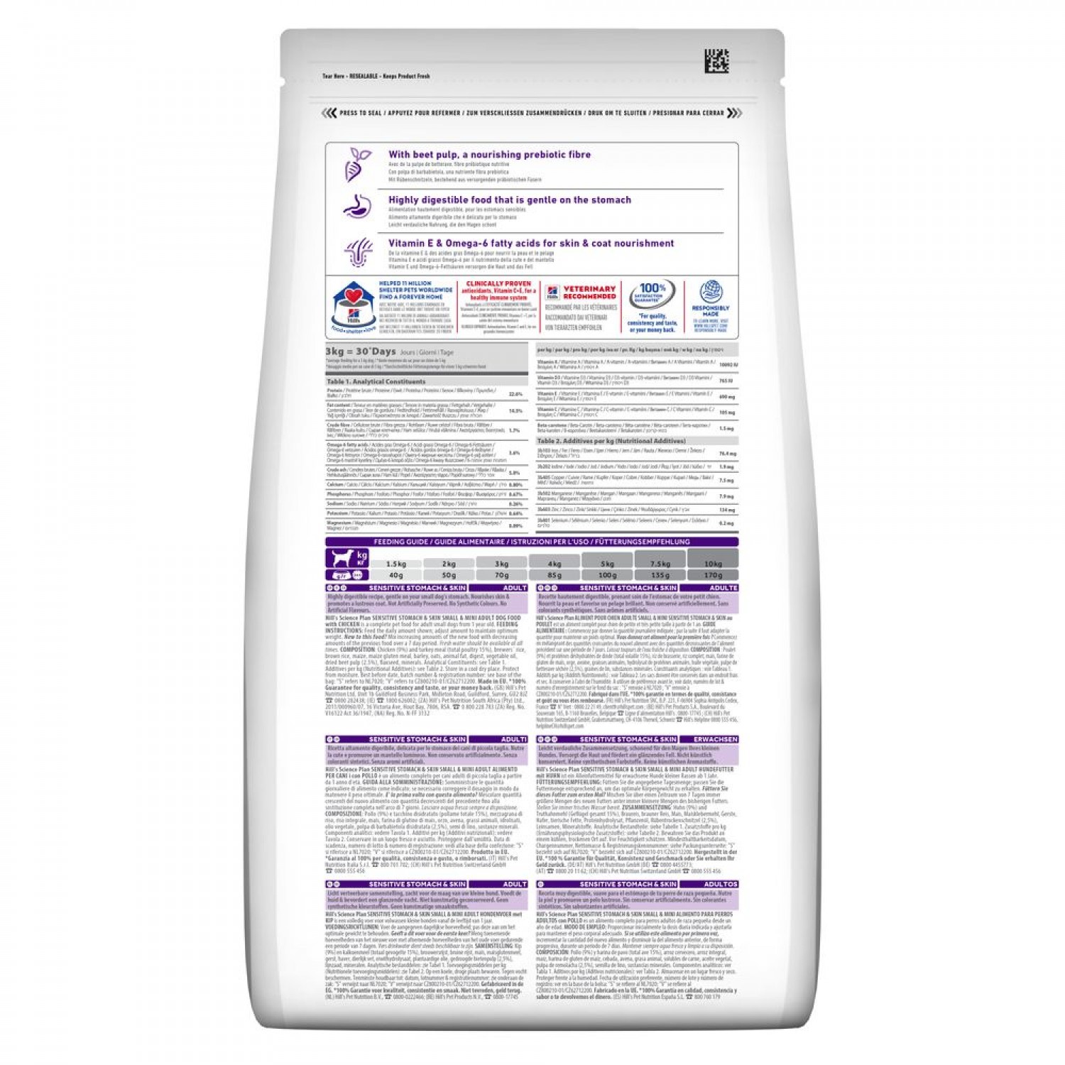 Сухой корм Hill's Science Plan Sensitive Stomach & Skin Small & Mini рекомендован для здорового пищеварения и сохранения красоты шерсти у взрослых собак малых и миниатюрных пород в возрасте до 6 лет. В течение беременности или лактации собак малых и миниатюрных пород рекомендуется кормить кормом для щенков Hill's Science Plan Puppy Small & Mini.