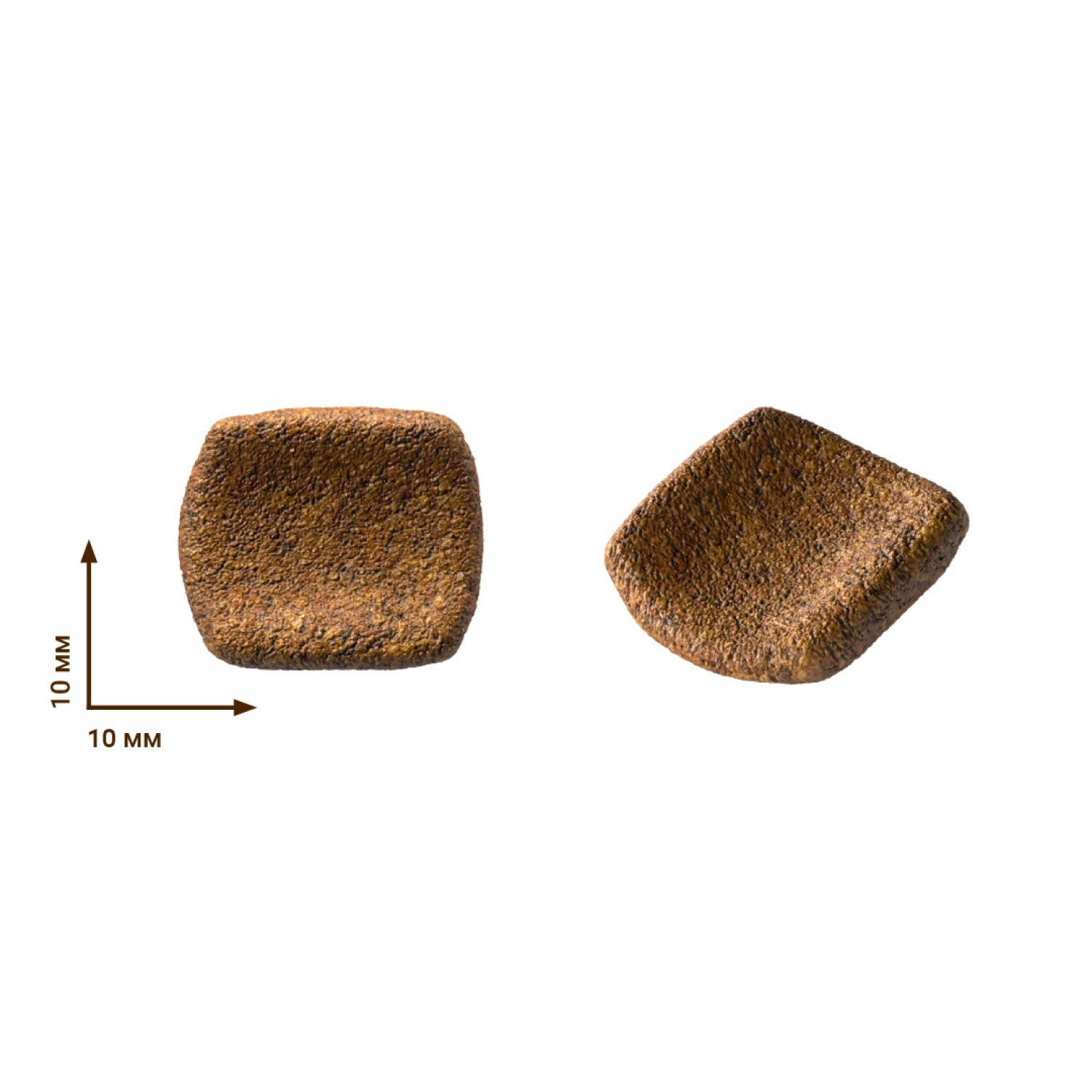 - Уникальная форма, размер и плотность гранул специально разработаны с учетом анатомического строения челюстного аппарата этих пород.