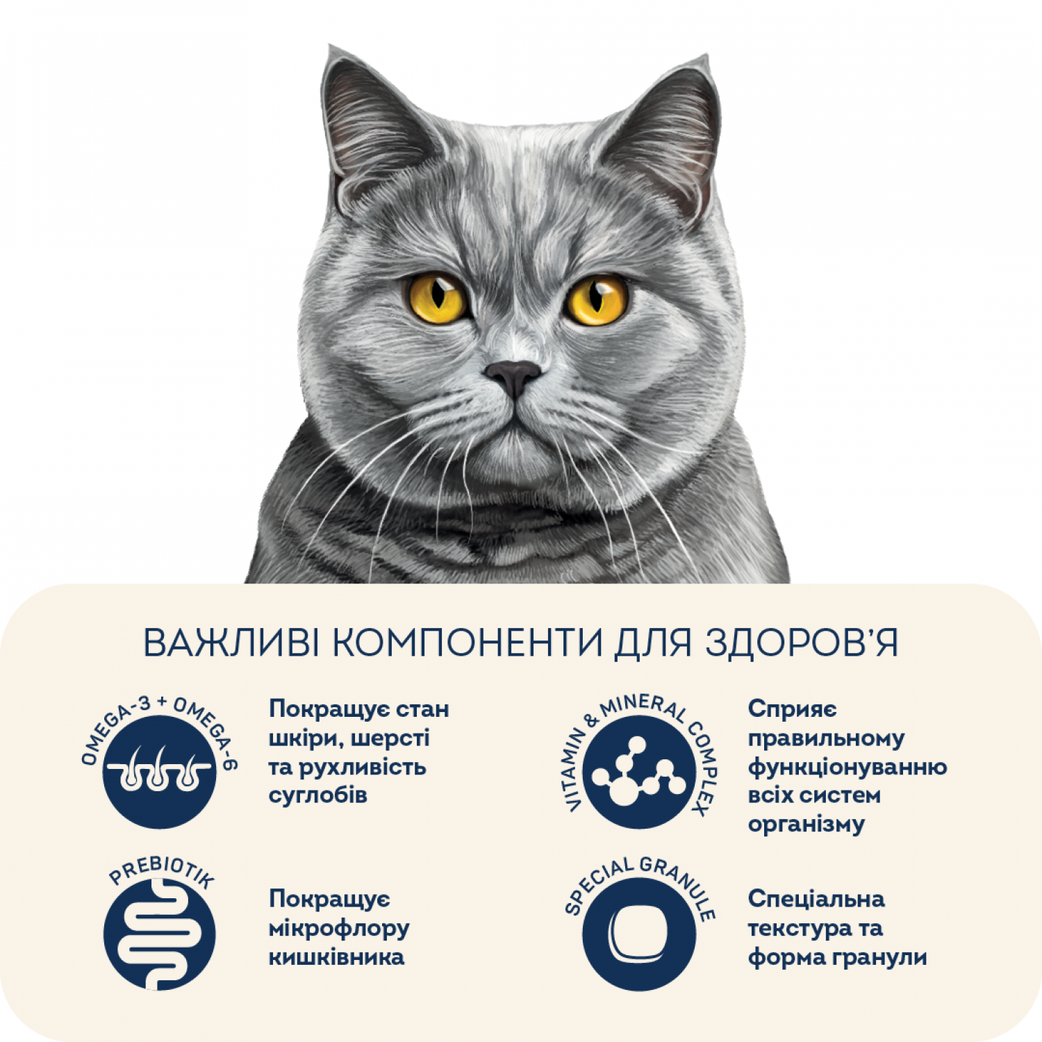 - Свежая креветка и рыбный коллаген содержат мощные органические источники гликозаминогликанов, поддерживающих опорно-двигательный аппарат у британских и шотландских кошек.
