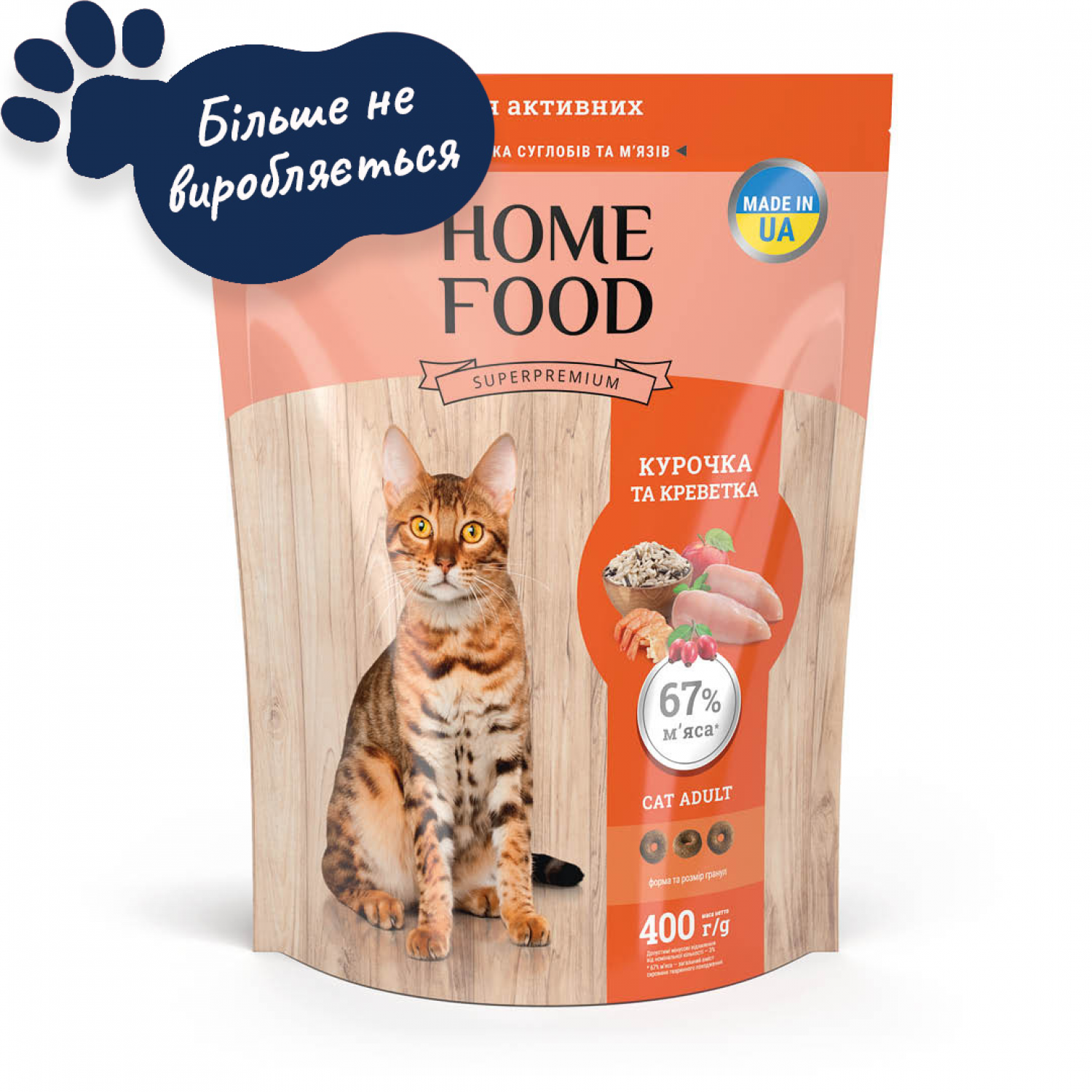 Home Food Cat Adult сухой корм для активных котов "Курочка и креветка" 0,4 кг