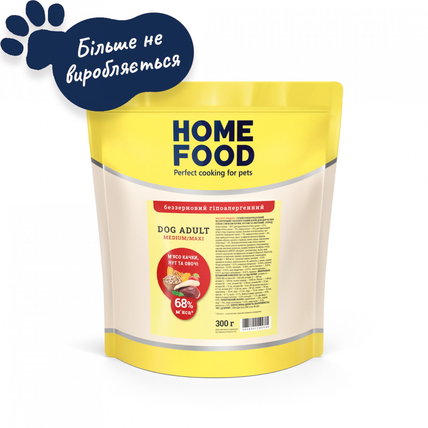 Home Food Dog Adult Medium/Maxi гипоаллергенный сухой корм для собак больших пород "Утка и нут" 0,3 кг