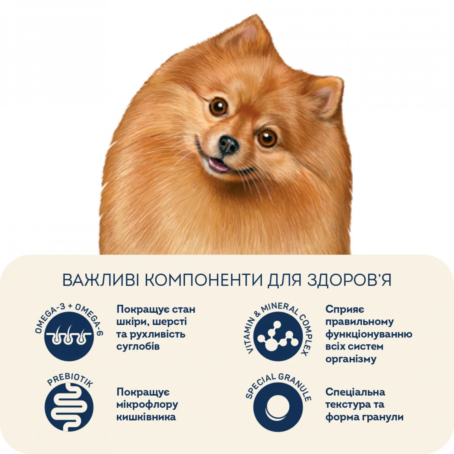 Рецептура разработана специально для малых пород собак. Идеальный выбор для собак с ярким окрасом и длинношерстных пород.