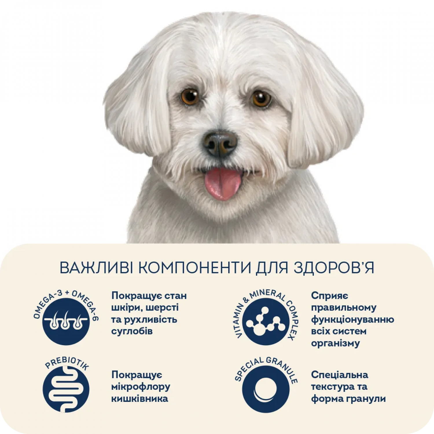 - Рацион с идеальным соотношением высококачественных питательных веществ и оптимальным уровнем жиров разработан специально для пород с белой шерстью.