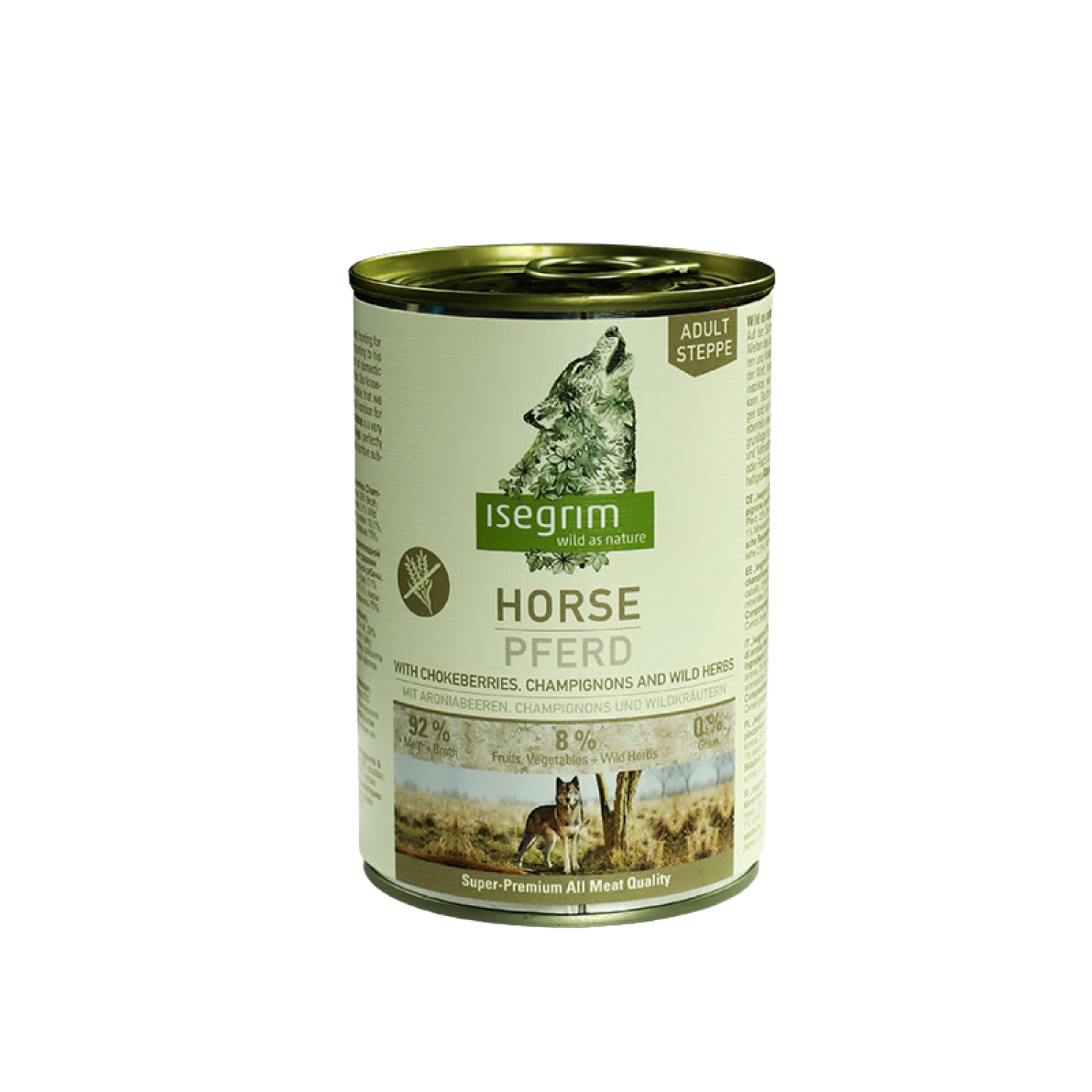 Консервированный корм для взрослых собак Isegrim Adult Steppe Конина с черноплодной рябиной, грибами и дикими травами.