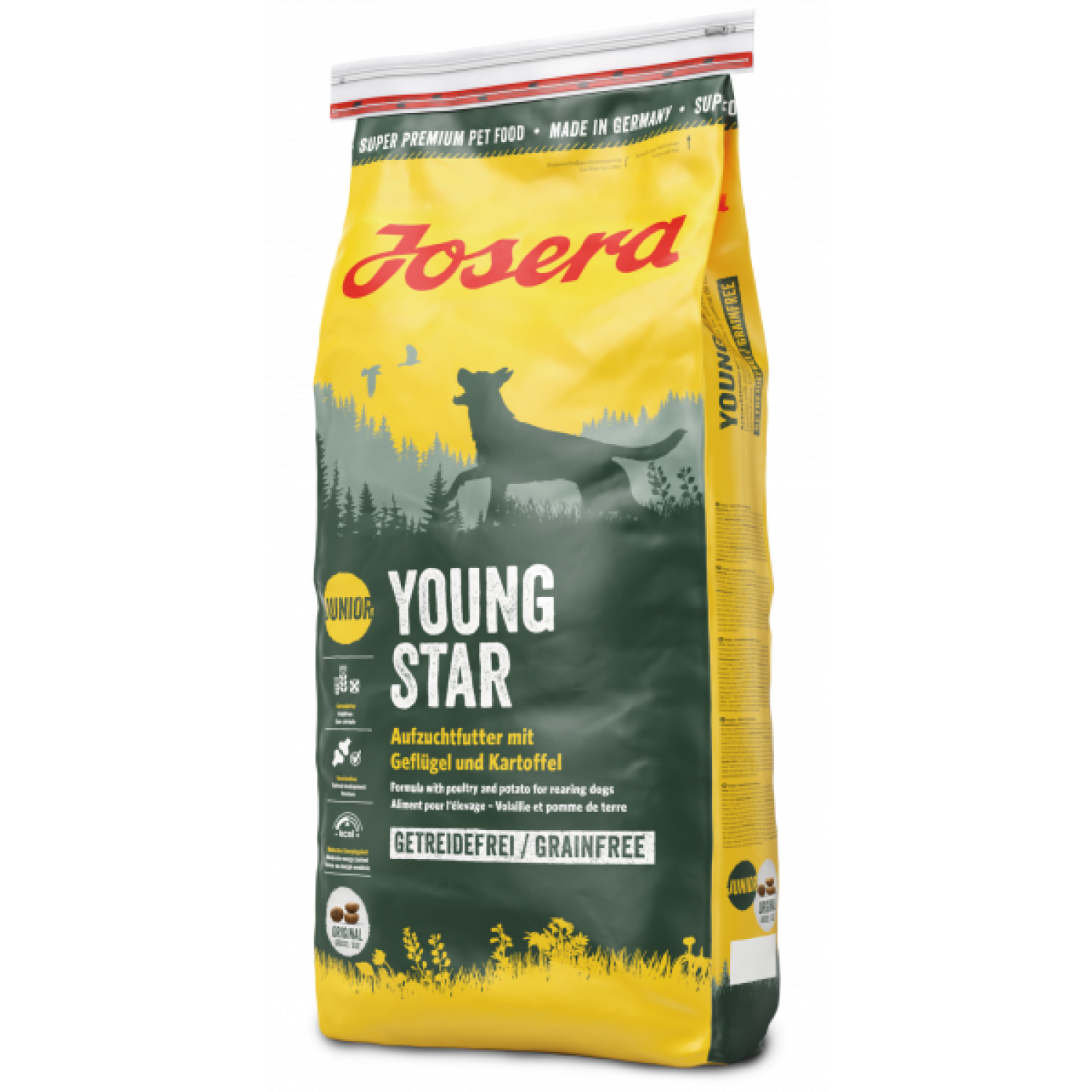 Josera YoungStar - беззерновой сухой корм суперпремиум класса для кормления щенков и юниоров вплоть до взрослого возраста. Рецепт без зерновых с натуральным мясом птицы и особенно ценными составляющими отлично сопровождает щенков на пути взросления.