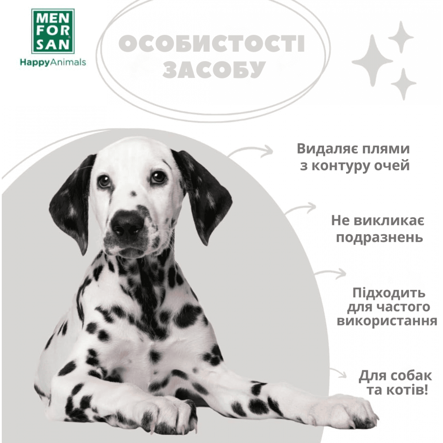 Рекомендуется для собак с белой окраской шерсти, особенно для пуделей, бишонов, а также для некоторых пород кошек - (ангорских кошек), которые склонны к образованию коричневых пятен вокруг глаз, которые можно смягчить и уменьшить с помощью ежедневного использования этого специального очищающего средства.