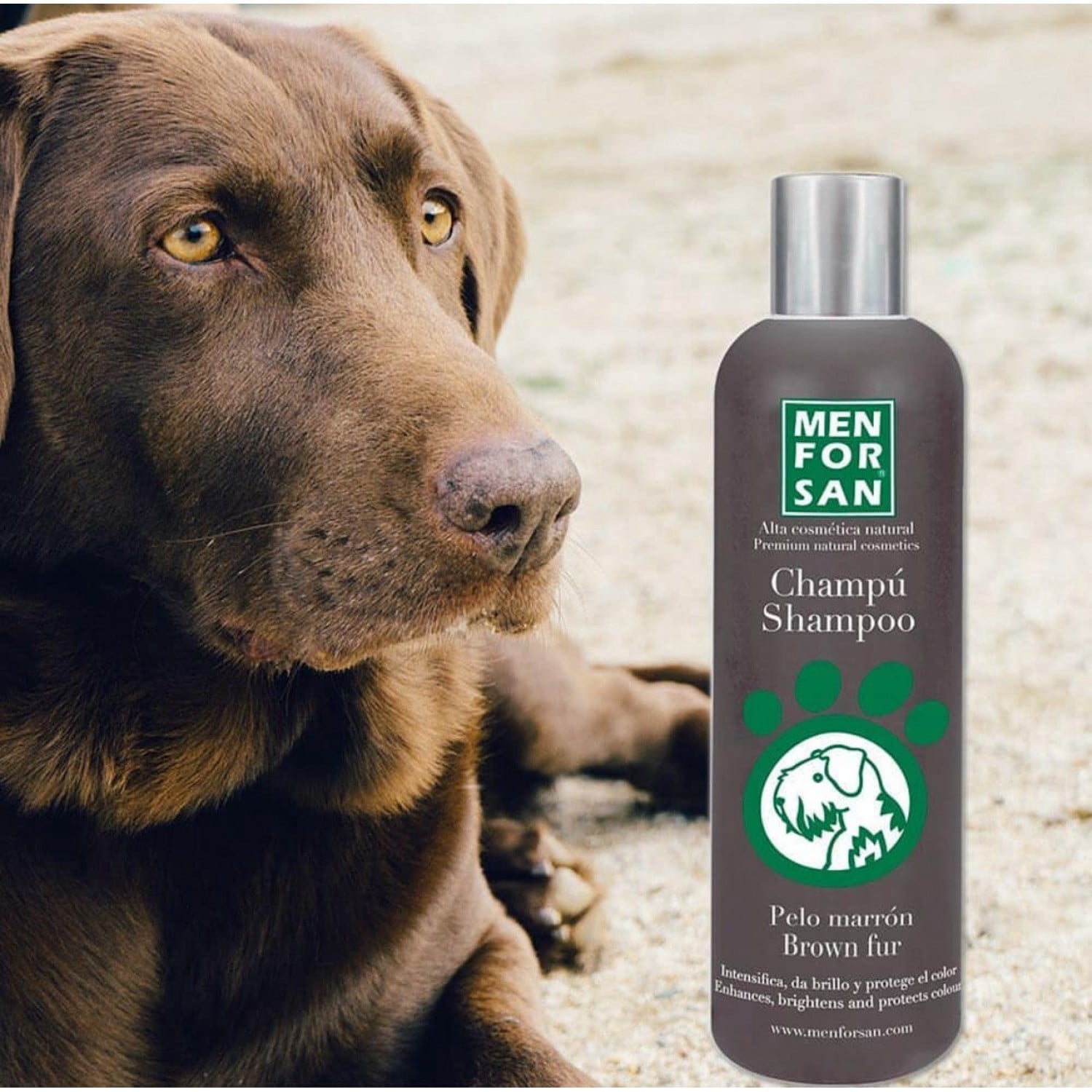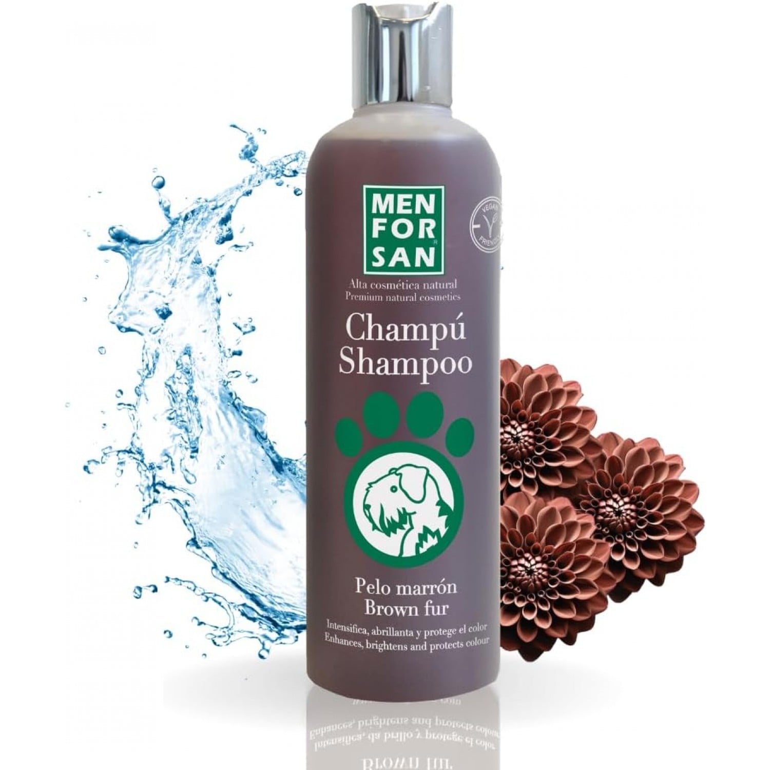 - Шампунь усиливает коричневый цвет и усиливает естественный цвет и блеск шерсти.