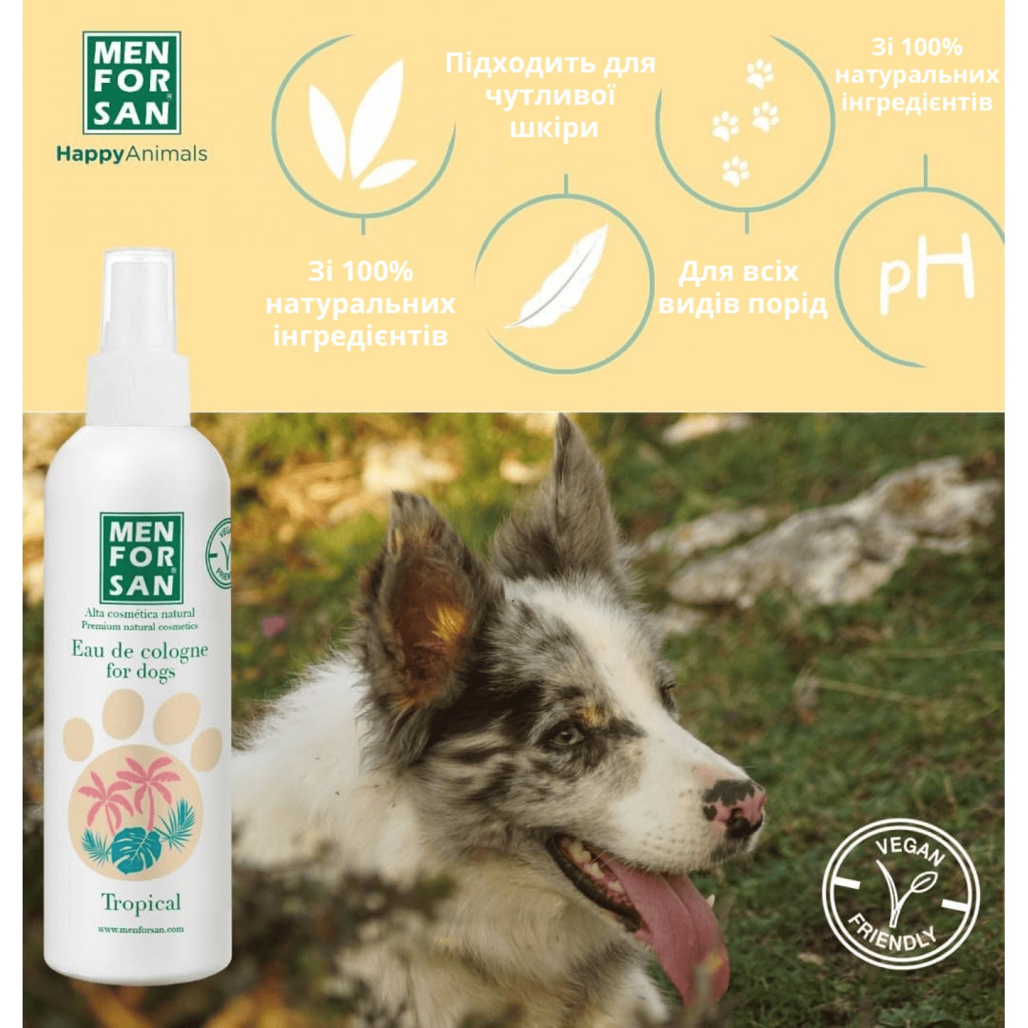 Натуральный одеколон для собак с ароматом TROPICAL, смесь лучших тропических фруктов, которые придают прекрасный сладкий вкус. Этот одеколон создан специально для свежего запаха после купания и интенсивного дезодорирующего эффекта, который очень приятный, сохраняя при этом кожу и обонятельные свойства животного.