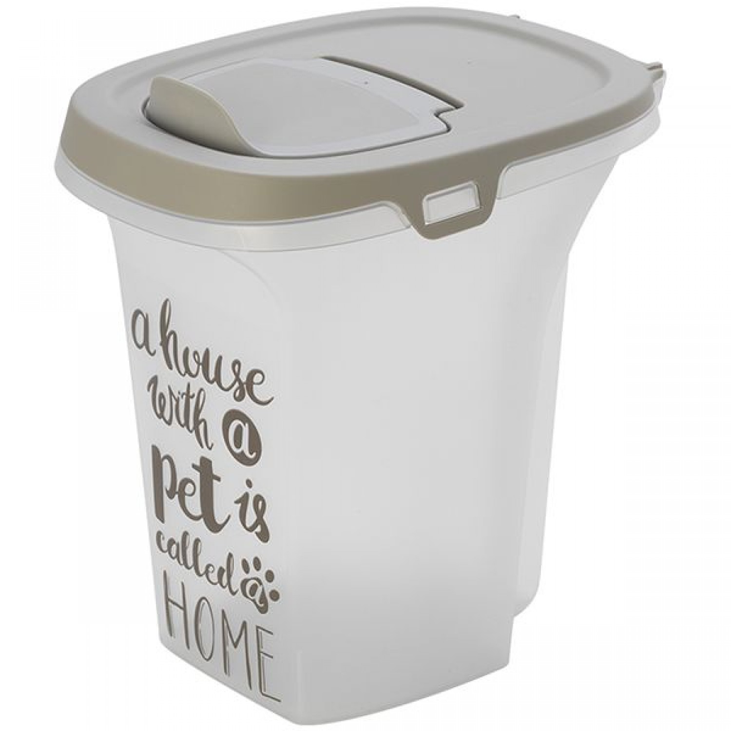 Модель предлагается в 5 вариантах объема: 5, 6, 10, 20, 38 л. В контейнерах объемом 5, 6 и 10 литров откидная крышка имеет 2 уровня открытия: полное вертикальное для заполнения контейнера кормом и небольшое для ежедневного использования. Все крышки фиксируются защелками.