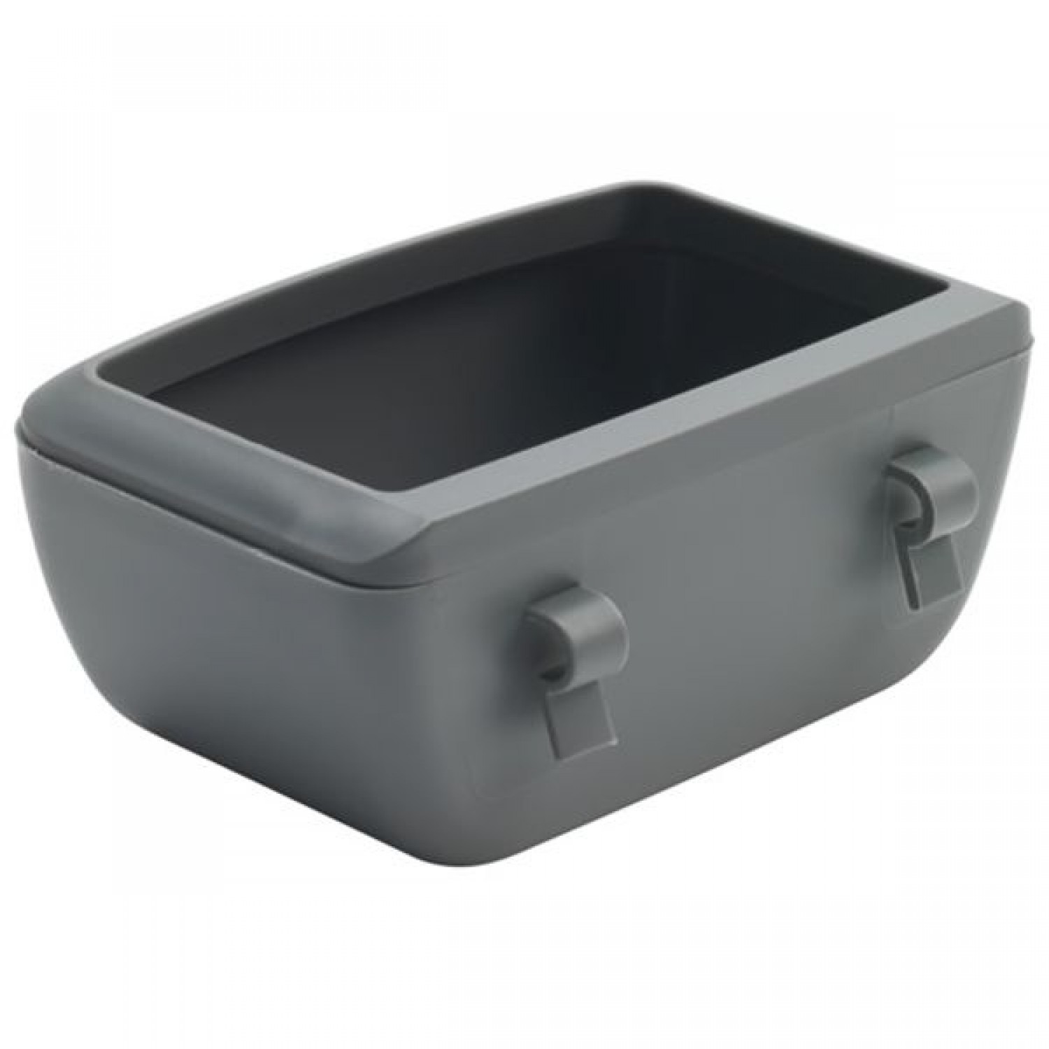 Аксессуар крепится к металлическим прутьям дверцы переноски Moderna благодаря 2-м крючкам, расположенным на задней части кормушки (крючки пластиковые, вылитые с корпусом). Однако кормушка более универсальна, ее также можно использовать для любых металлических решеток толщиной прутьев не более 4 мм. Это могут быть переноски, вольеры, клетки для птиц, грызунов не только ТМ Модерна, но и других производителей. Нейтральный серый цвет подходит для переноски любого цвета и не испортит общий внешний вид.