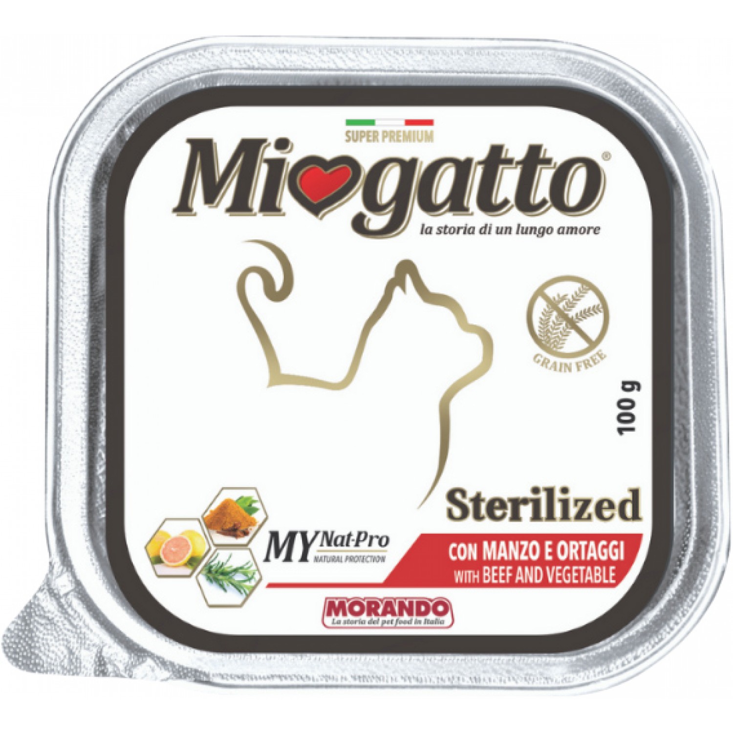 Morando Miogatto Sterilised влажный корм для стерилизованных кошек с говядиной и овощами.