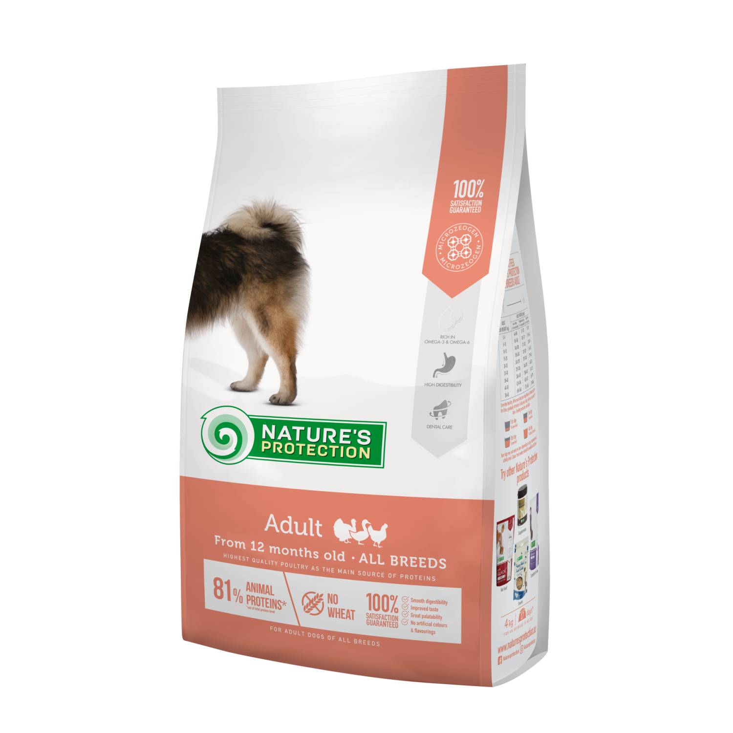 Nature's Protection - это сбалансированные полнорационные сухие корма суперпремиум класса, созданные для удовлетворения разнообразных потребностей молодых и зрелых собак. Особенно любимые собаками легкоусвояемые корма не содержат генетически модифицированных продуктов и искусственных красителей.