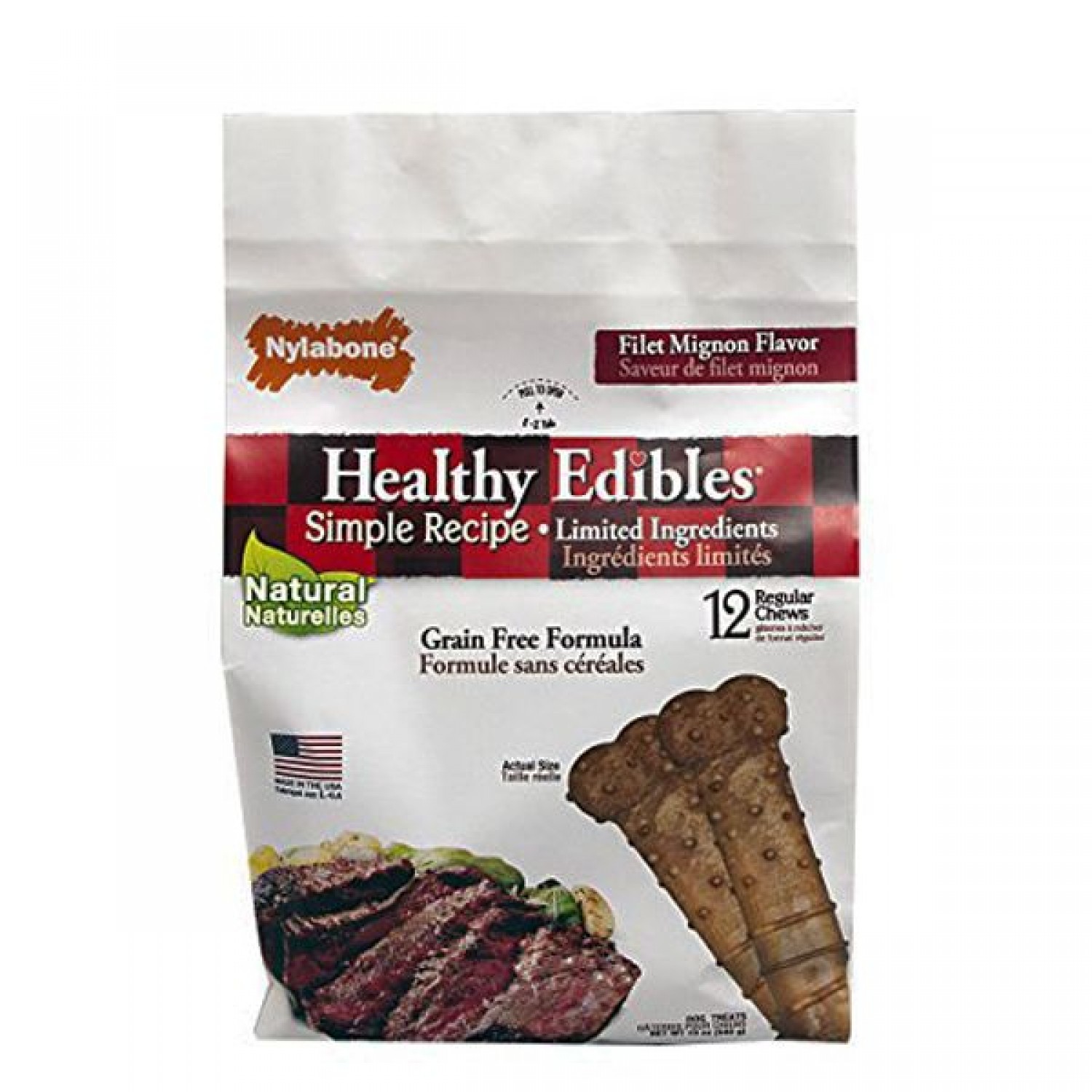 Nylabone Healthy Edibles - рецепт полезного лакомства для собак с чувствительным пищеварением весом 7-11кг. Жевательные косточки сделаны только из 7 натуральных ингредиентов, которые легко усваиваются. Это вкусное угощение с несравнимым вкусом филе миньон – идеальная закуска для поддержания хорошего здоровья вашего питомца.