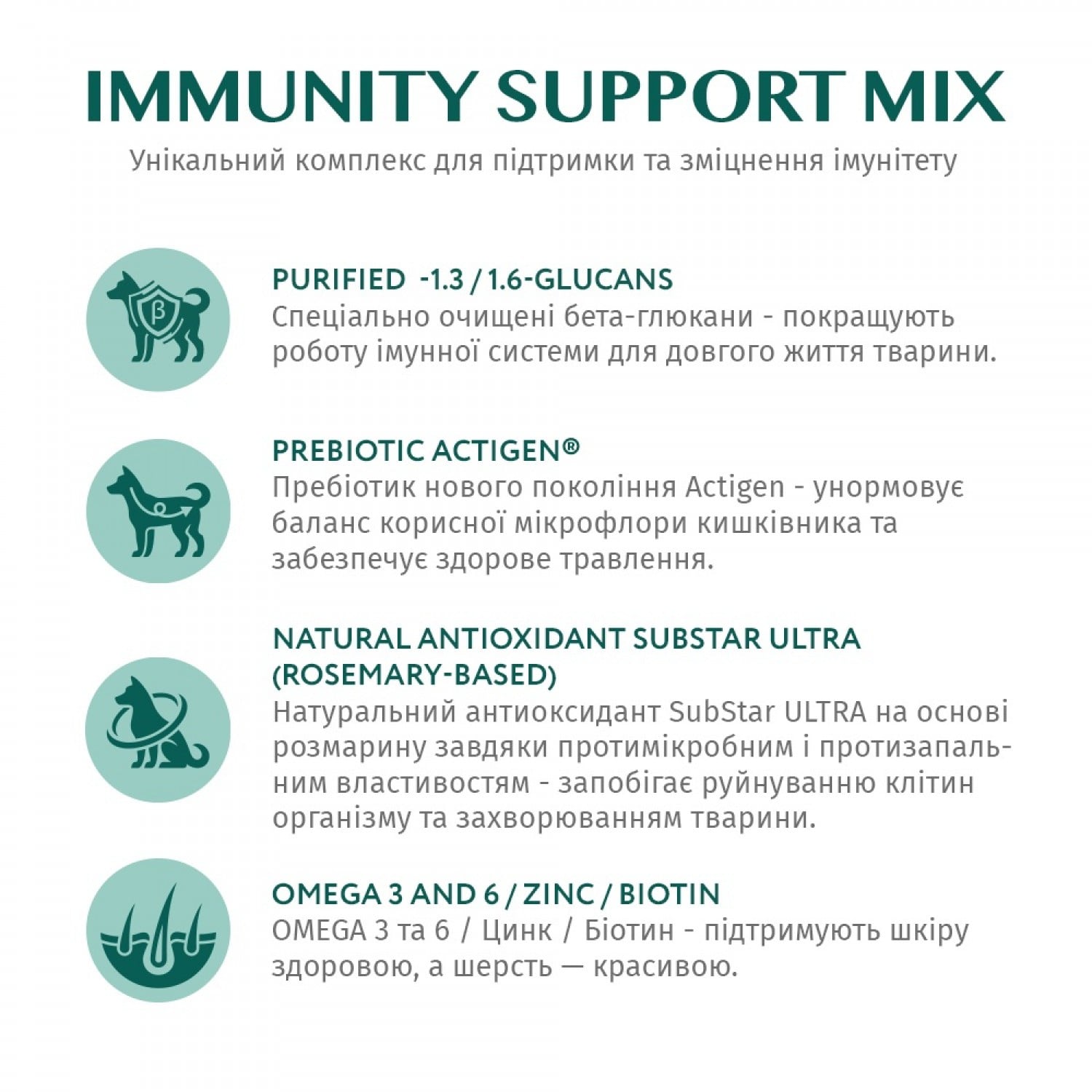 • Омега-3 и 6, цинк, биотин помогают поддерживать кожу собаки здоровой, а шерсть блестящей.