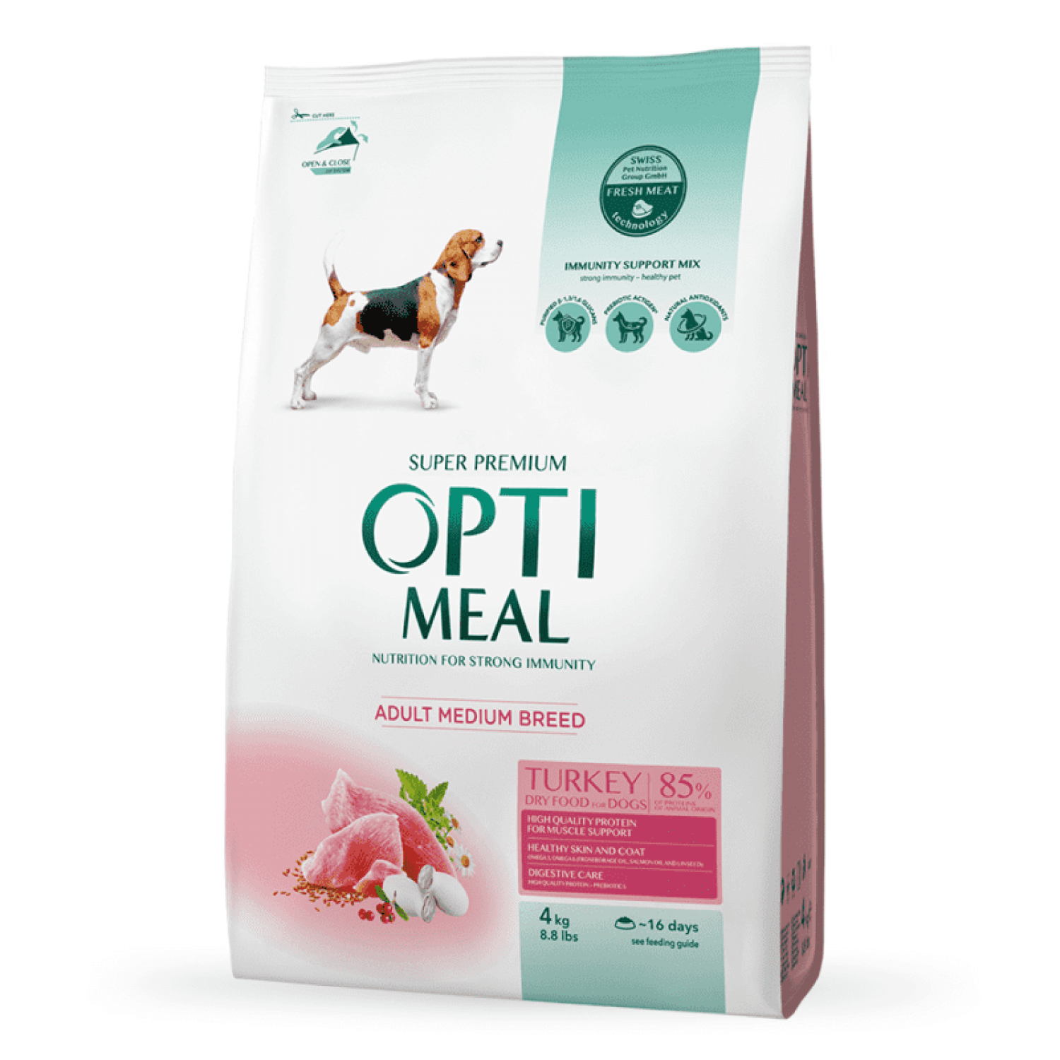 Optimeal Dog Adult Medium - полноценное питание с индейкой для взрослых собак средних пород старше 12-и месяцев.