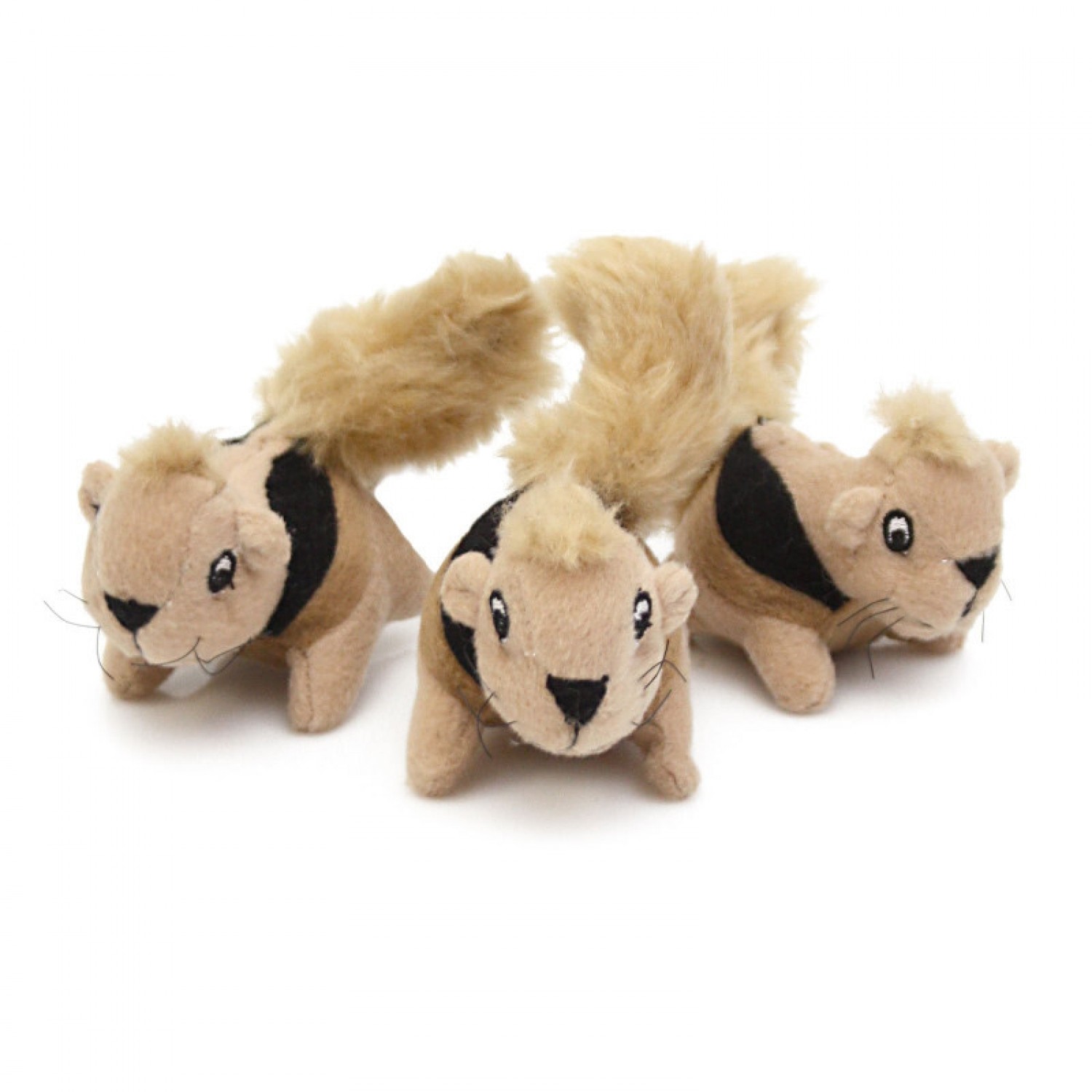 Играть с этими невероятными плюшевыми белочками-пищалками всегда весело, а еще, их можно спрятать в ствол плюшевого дерева для увлекательных игр в тайники. Белочки изготовлены из мягкой ткани, нежной к чувствительным деснам щенков и стареющих питомцев, но достаточно прочной, чтобы выдержать множество игровых сеансов. Каждая из трех белочек содержит фирменную непобедимую пищалку, которая будет пищать даже если ее прокусить.