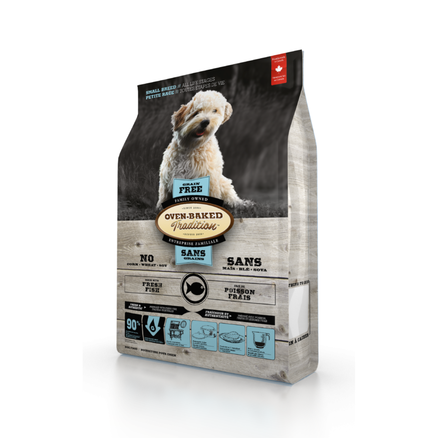 Oven-Baked Tradition полностью сбалансированный беззерновой сухой корм для собак малых пород со свежим мясом рыбы.