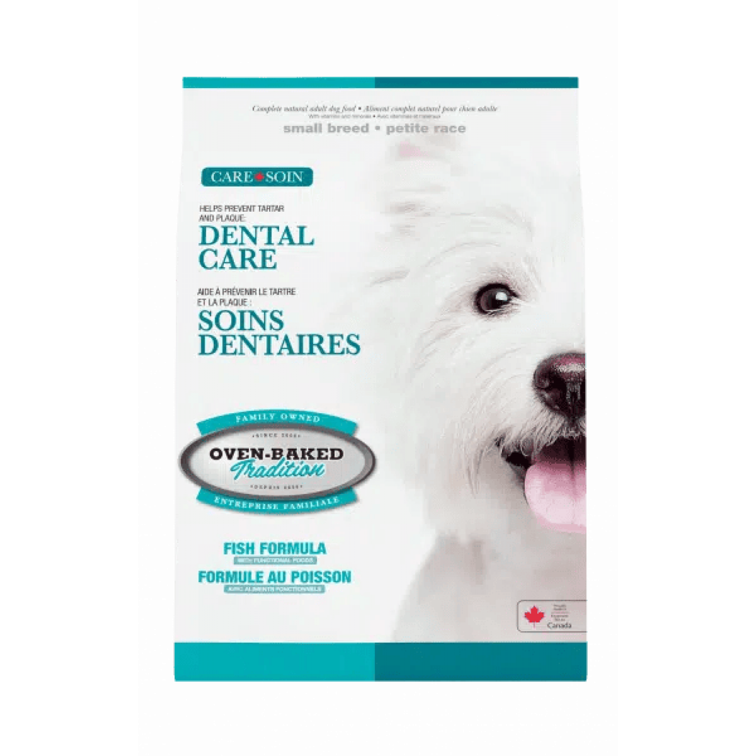Oven-Baked Tradition Dental Сare полностью сбалансированный сухой корм для взрослых собак малых пород по уходу за зубами с рыбой.