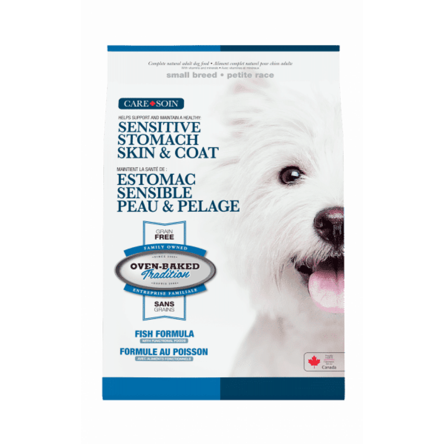 Oven-Baked Tradition Skin & Stomach полностью сбалансированный сухой корм для собак малых пород для здорового пищеварения и шелковистой шерсти.