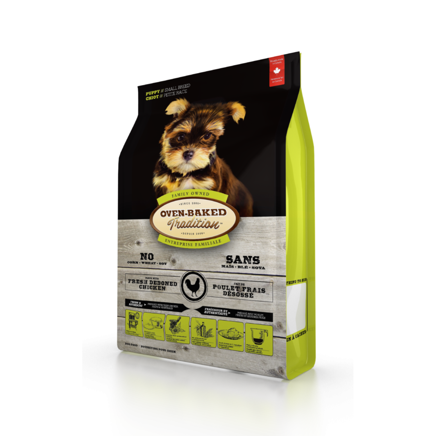 Oven-Baked Tradition полностью сбалансированный сухой корм для щенков малых пород со свежим мясом курицы.