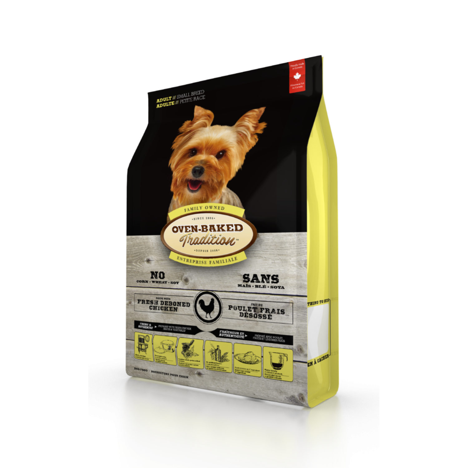 Oven-Baked Tradition полностью сбалансированный сухой корм для собак малых пород со свежим мясом курицы.