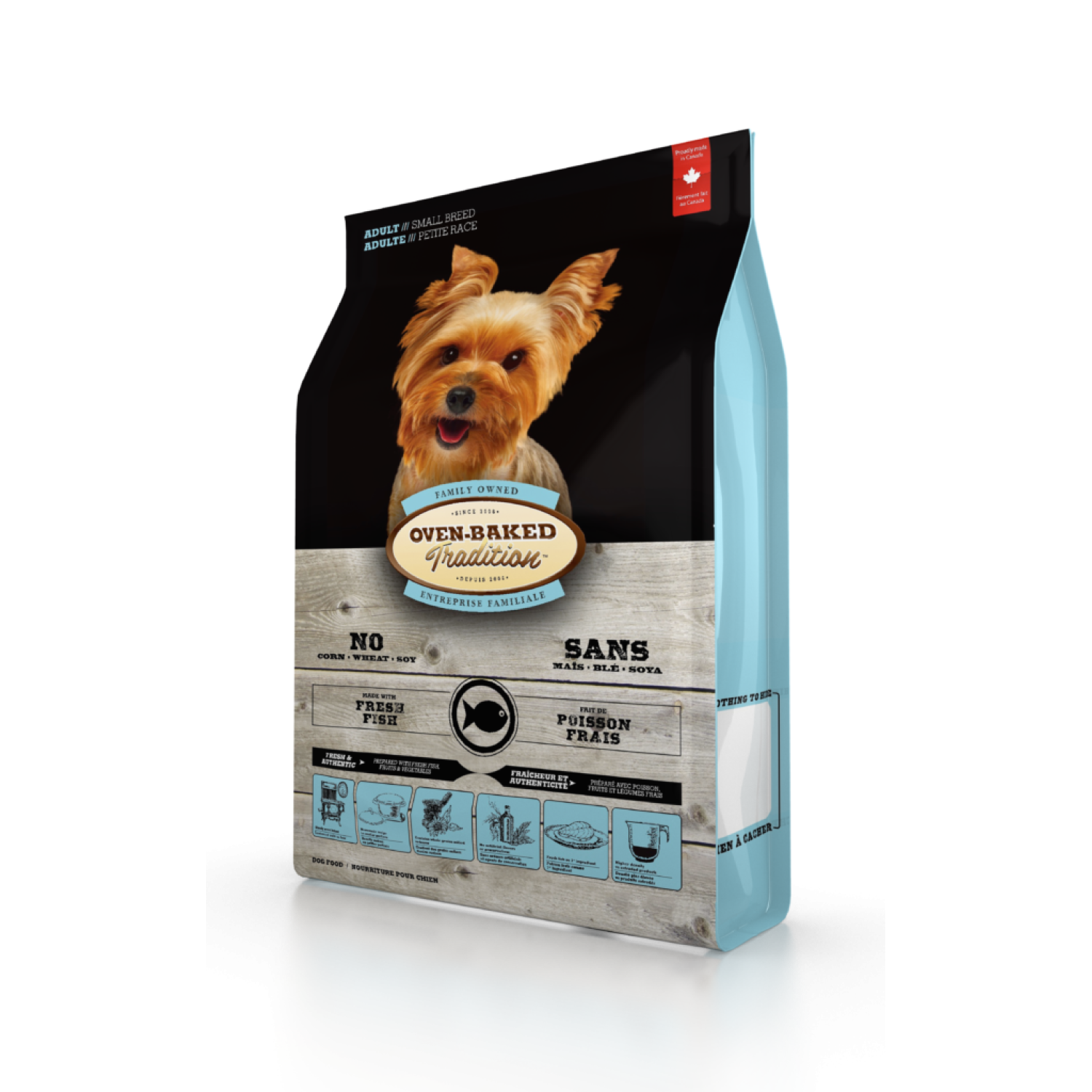 Oven-Baked Tradition полностью сбалансированный сухой корм для собак малых пород со свежим мясом рыбы.